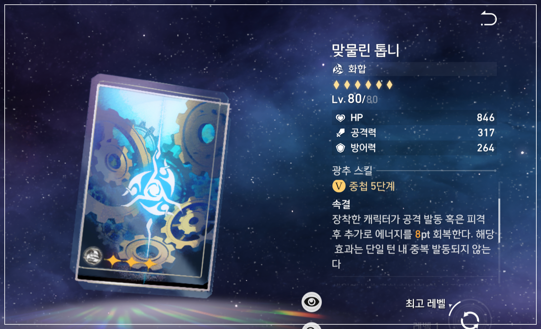 에너지 회복 효율 10%, 스킬 포인트 1 회복