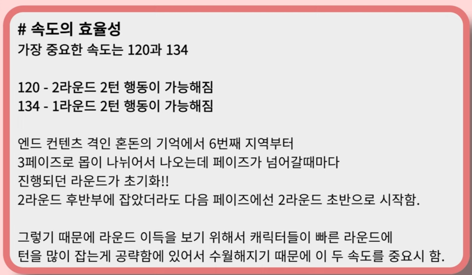 속도 134를 맞추면 1라운드 2턴 행동이 가능합니다.