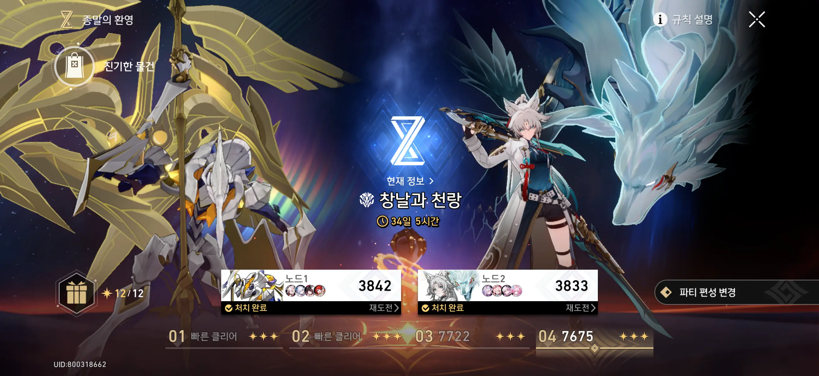 보유 픽업 캐릭터 : 경류, 나찰, 제레(3돌), 부현(4돌), 아케론 (3돌)