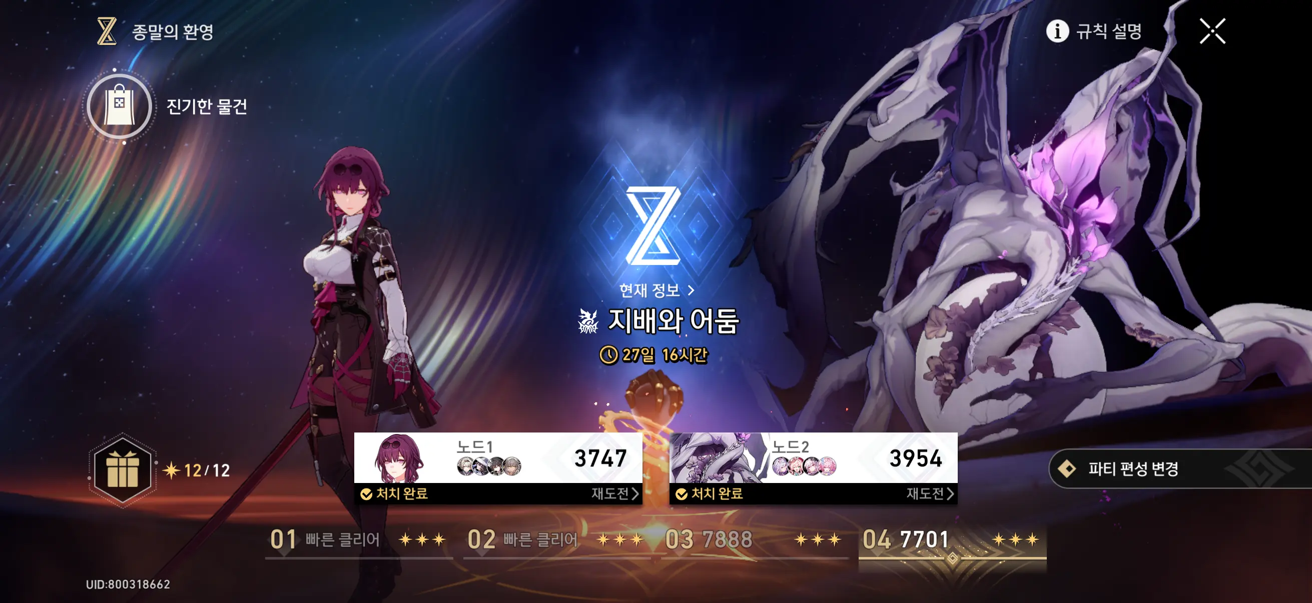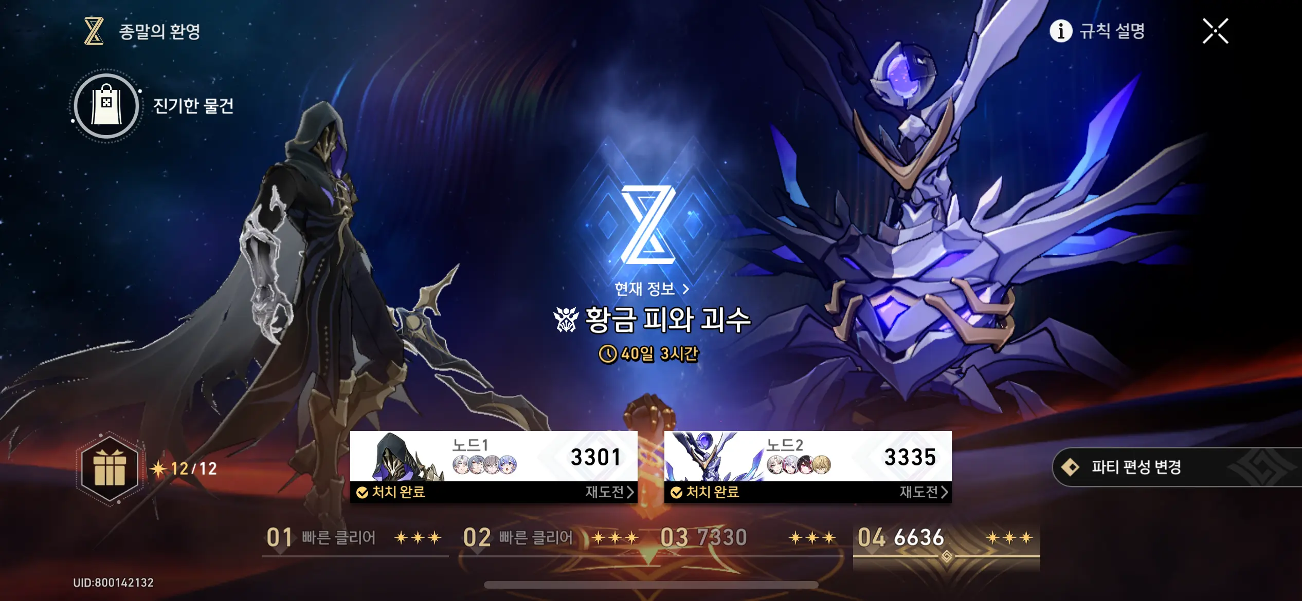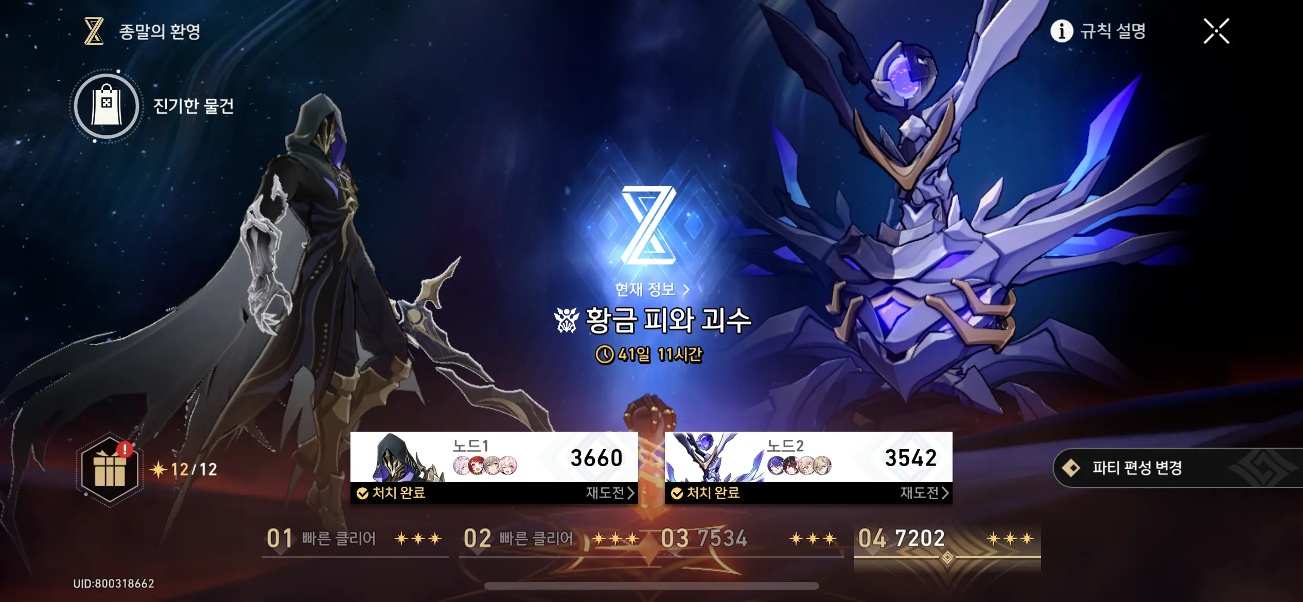 나머지는 카스 2돌 파티로 0라클 클리어..