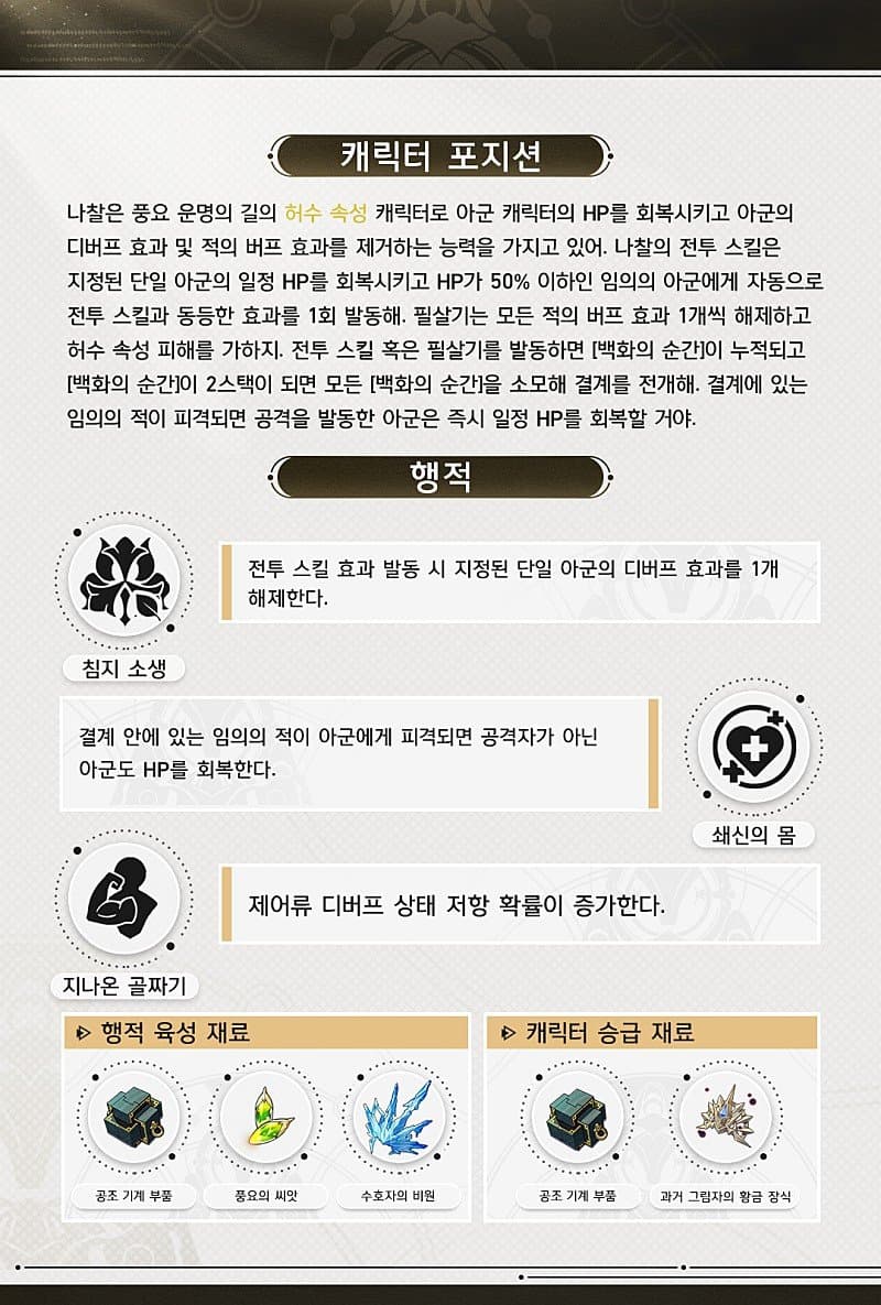 행적을 보시면 행적을 찍음으로써 디버프 제거+우리 아군 추가 회복이라는 능력치가 추가됩니다.