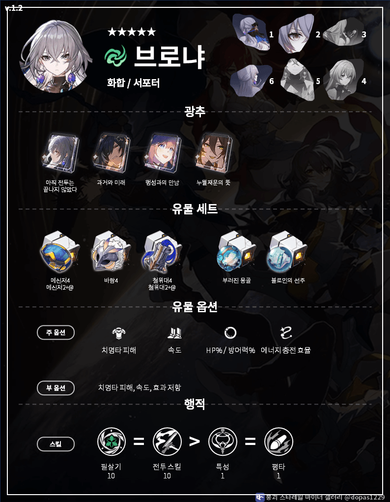 붕괴 스타레일 : 1.5 버전 브로냐 성능 공략 광추 파티 조합 유물 장신구 추천