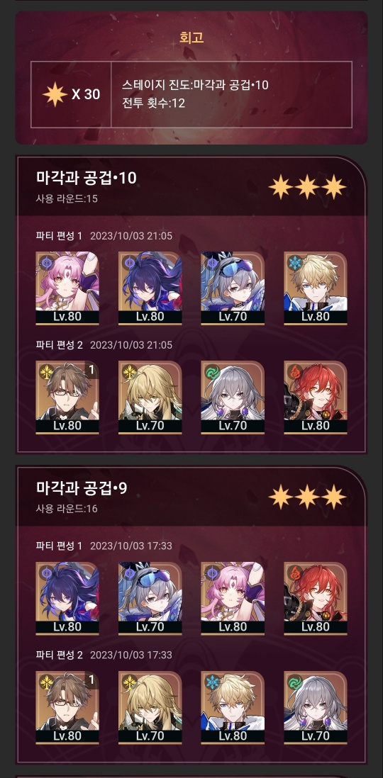 돌파한 파티입니다.