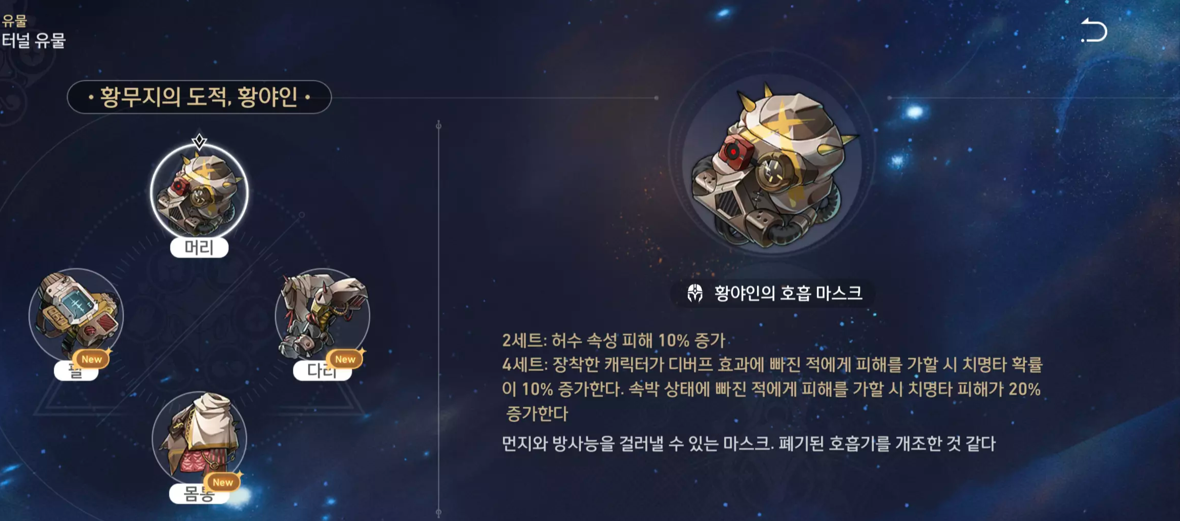 메인 딜러로 사용할 때는 필수 유물 세트입니다.