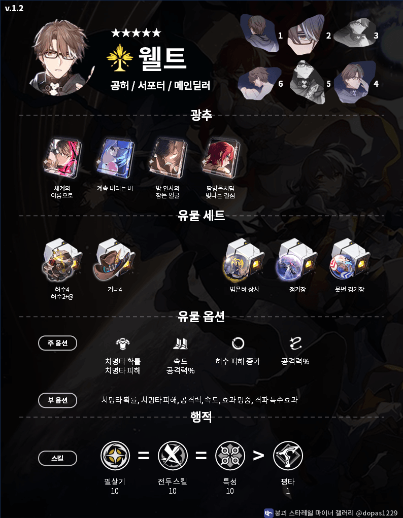 붕괴 스타레일 웰트 성흔[돌파] 추천