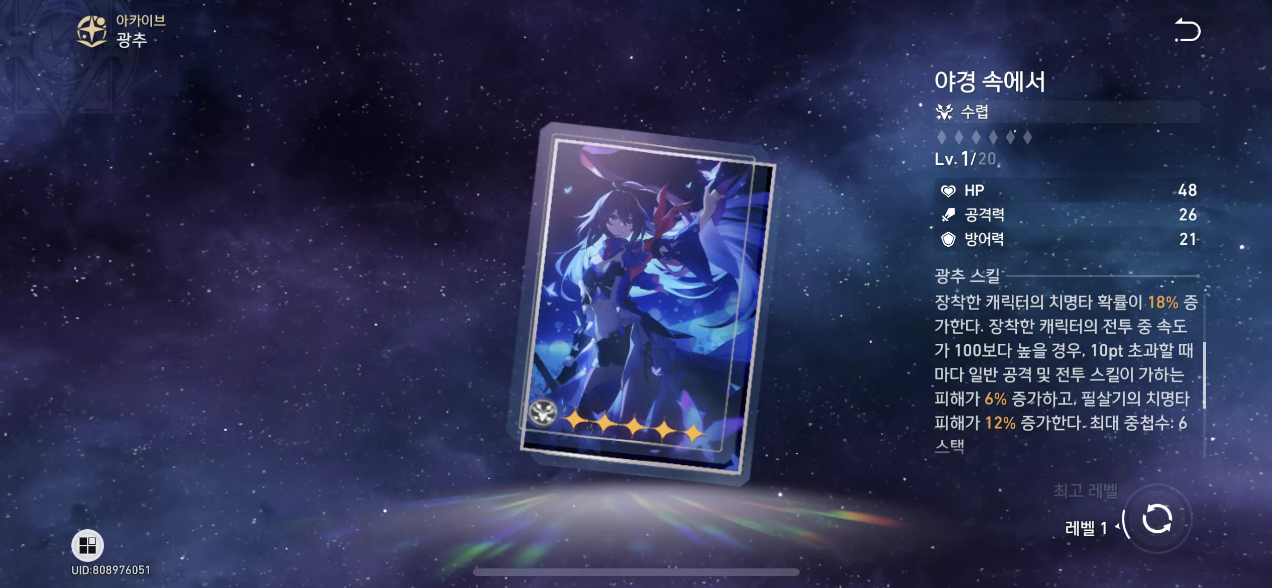 | 부 옵션 | 1 순위 : 치명타 피해 치명타 확률 3 순위 : 공격력 % 4 순위 : 속도 |