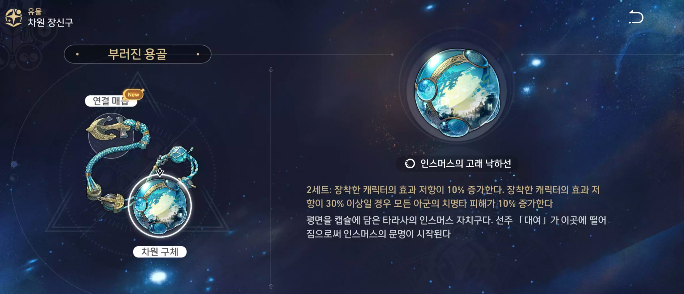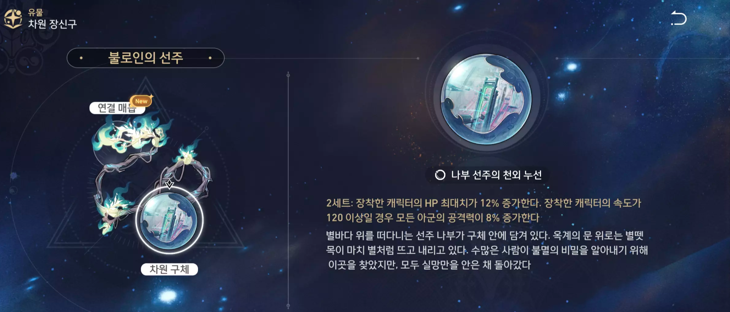 | 부 옵션 | 1 순위 : HP% 2 순위 : 방어력 % 3 순위 : 속도 4 순위 : 효과 저항 |