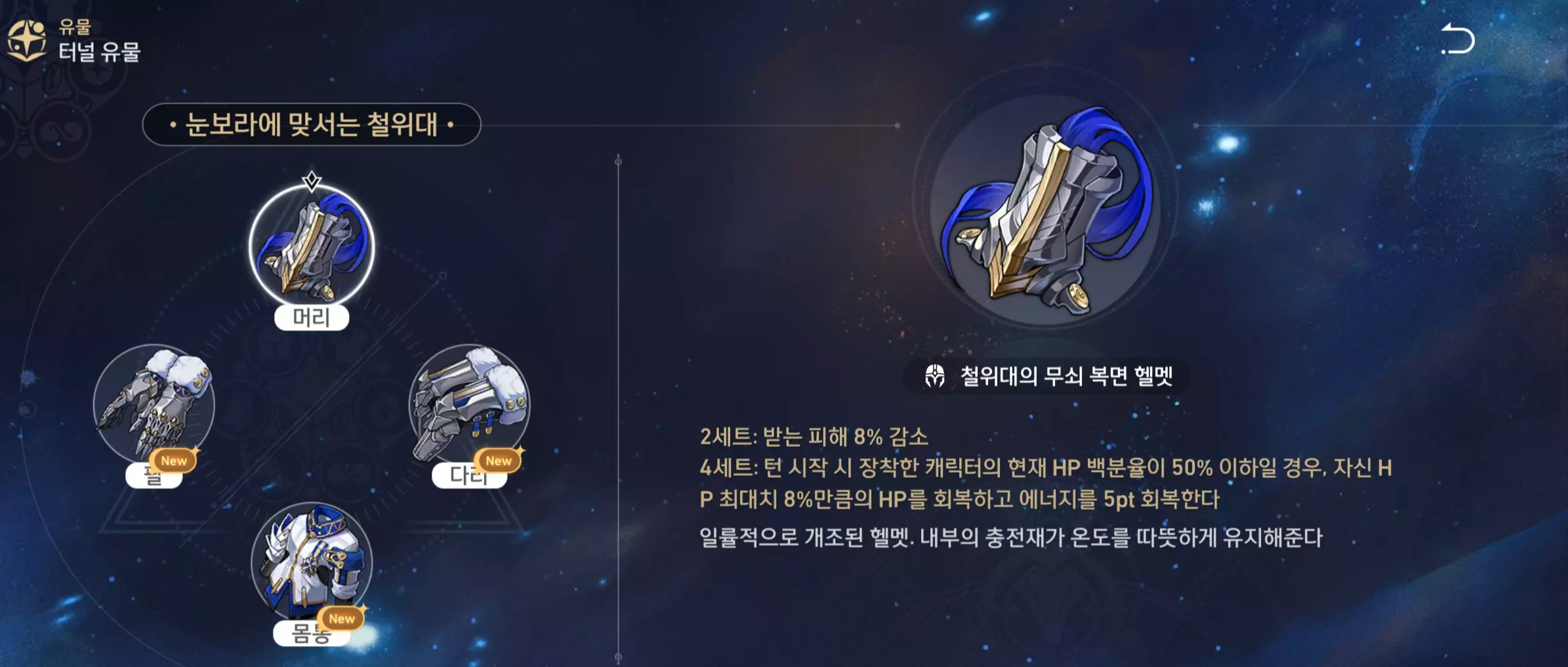 피해 감소 8% + HP 50% 감소 시 회복 + 에너지 회복..