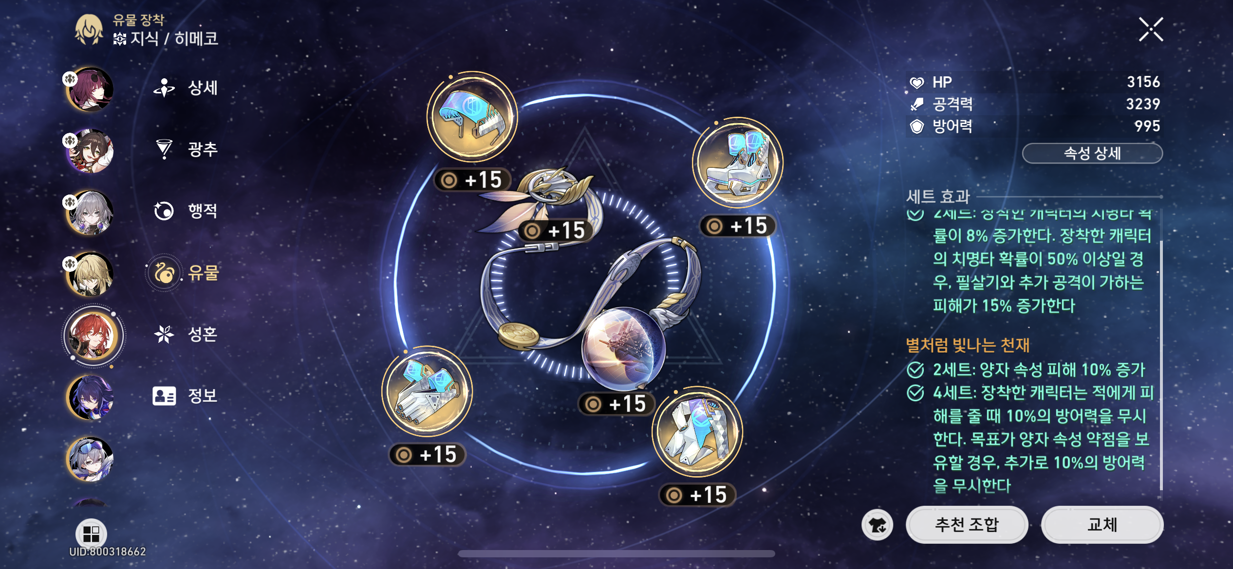 붕괴 스타레일 : 2.0 버전 히메코 성능 공략 광추 파티 조합 유물 장신구 추천