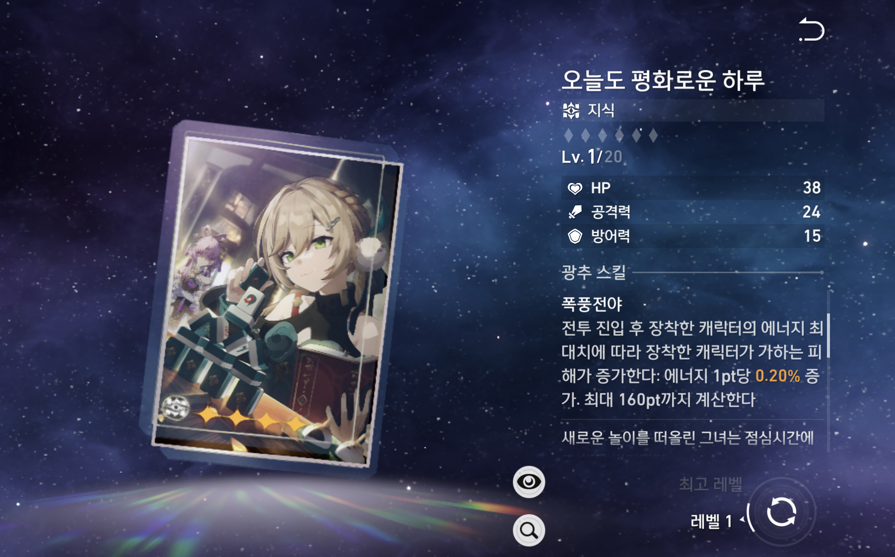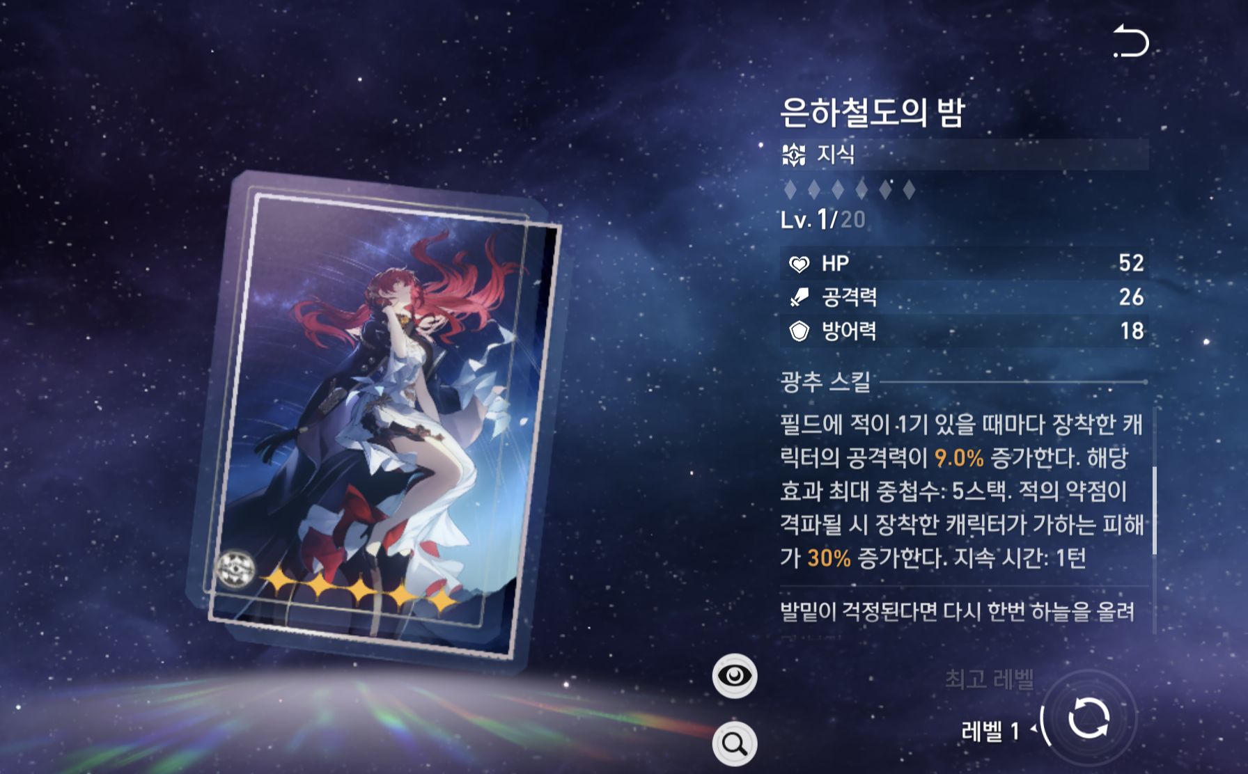 | 부 옵션 | 1 순위 : 공격력% 2 순위 : 공격력 3 순위 : 속도 4 순위 : 격파 특수 |