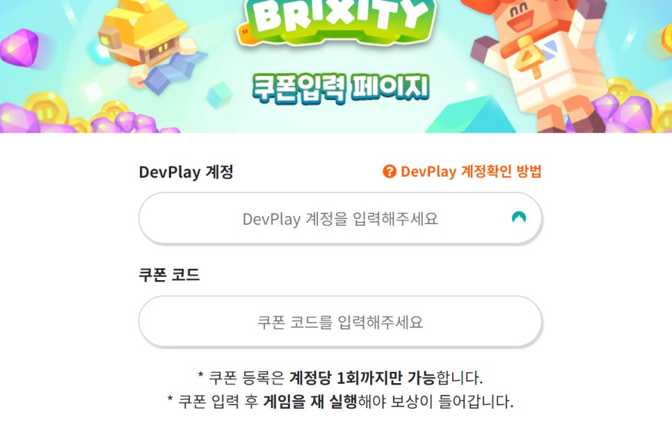 브릭시티 쿠폰 코드 입력 사이트 [CLICK]