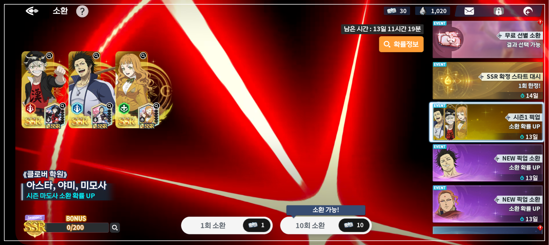 블랙 클로버는 선별 뽑기에서 기회를 20번이나 주거든요 : D