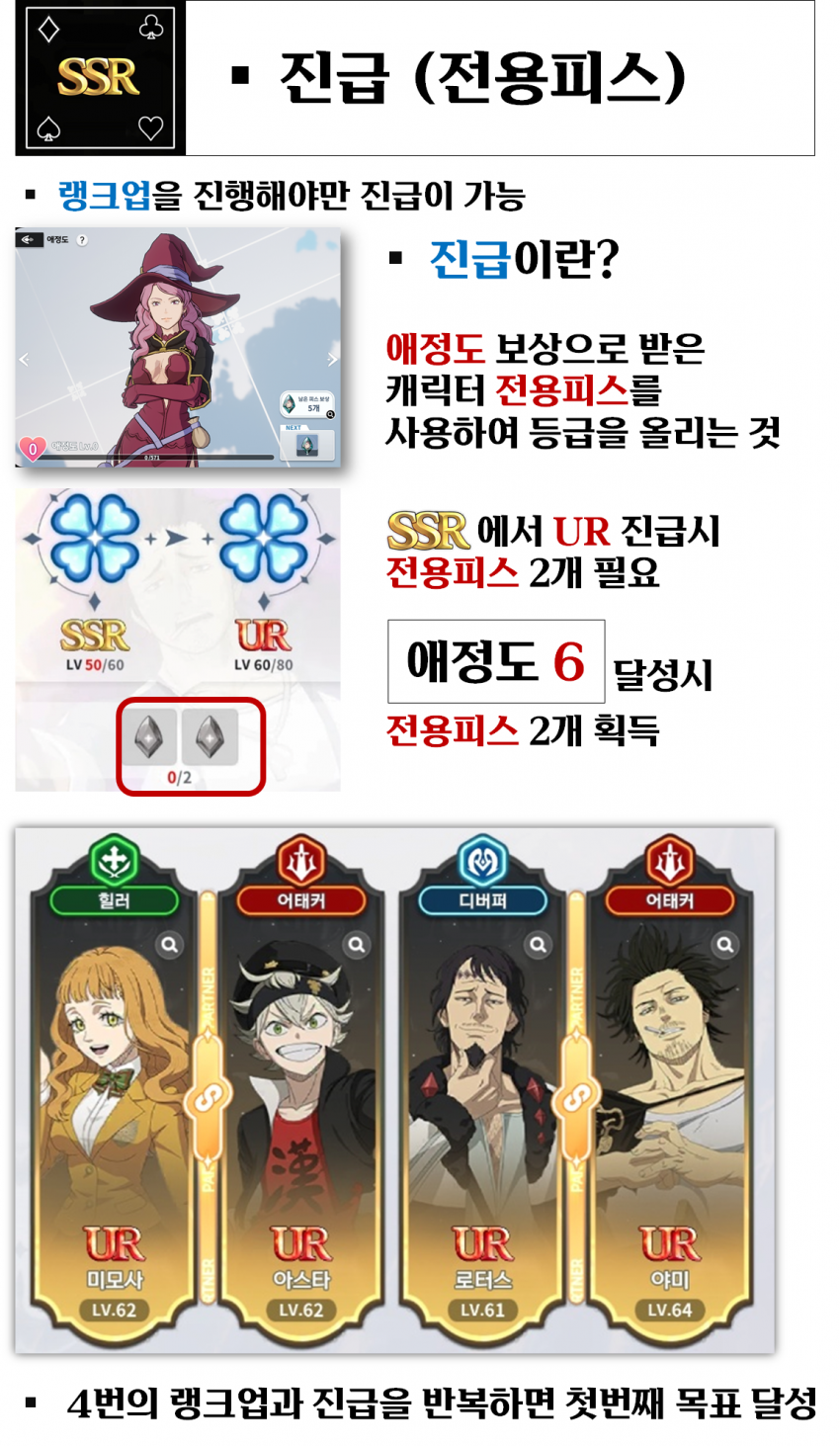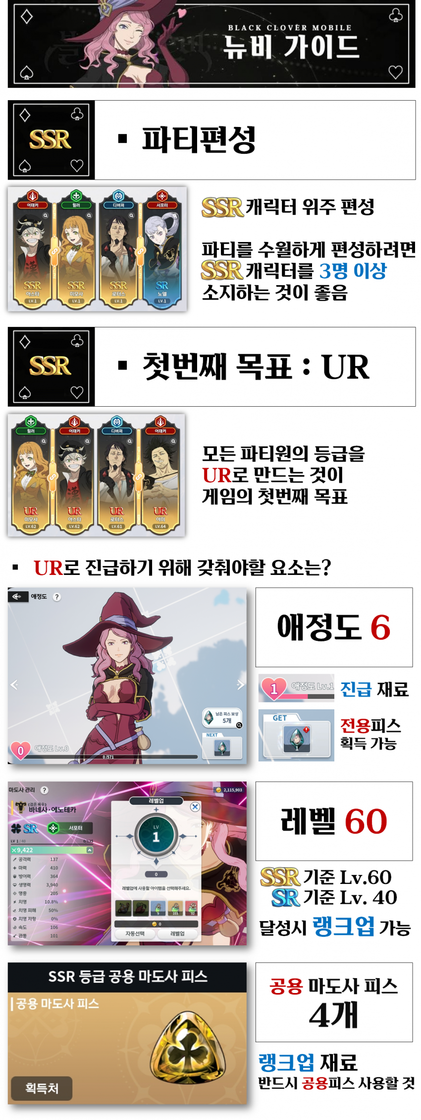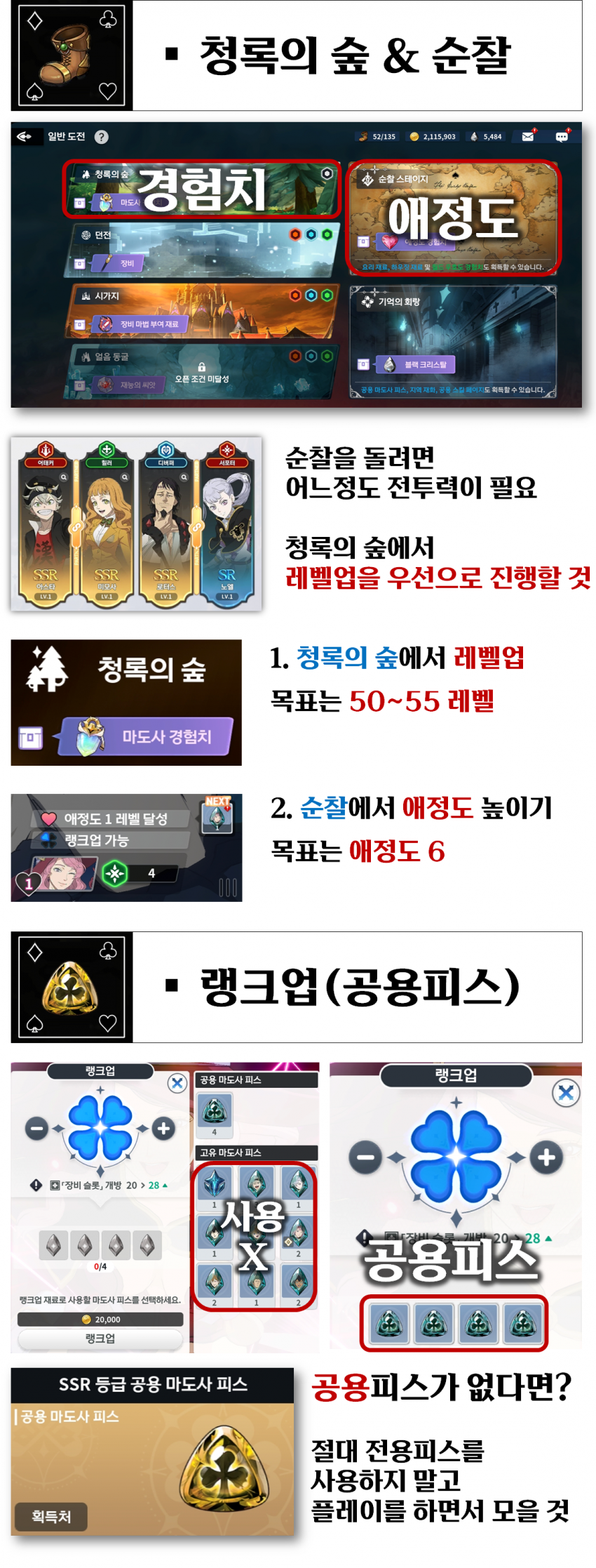 오늘은 블랙 클로버 모바일 뉴비분들을 위한 공략을 가져왔습니다. 아직까지도 인기가 많아 유입이 많은 게임이죠?