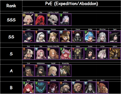 사전예약 쿠폰 캐릭터 티어 등급표와