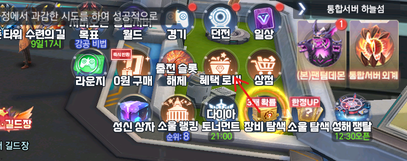 1. 먼저 메인화면 오른쪽 혜택 로비를 클릭.