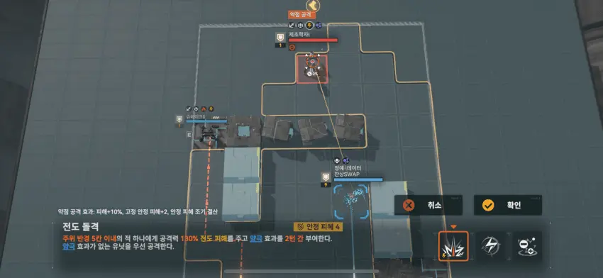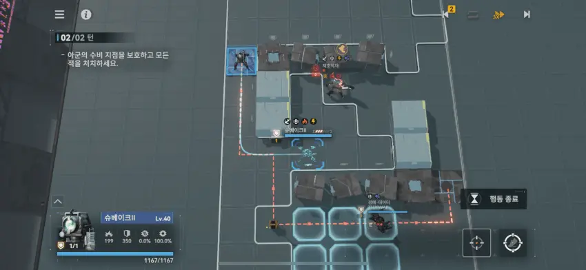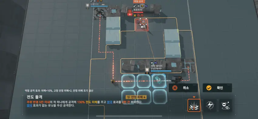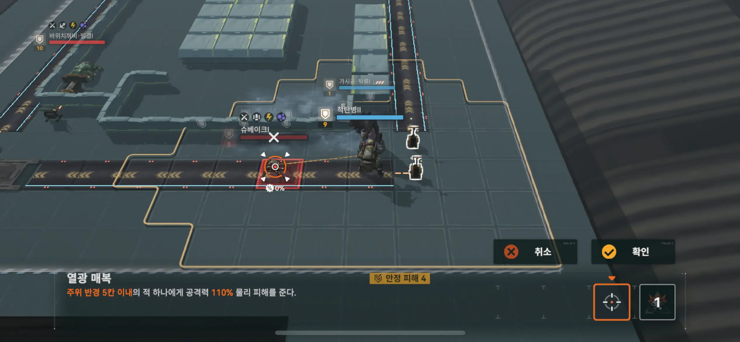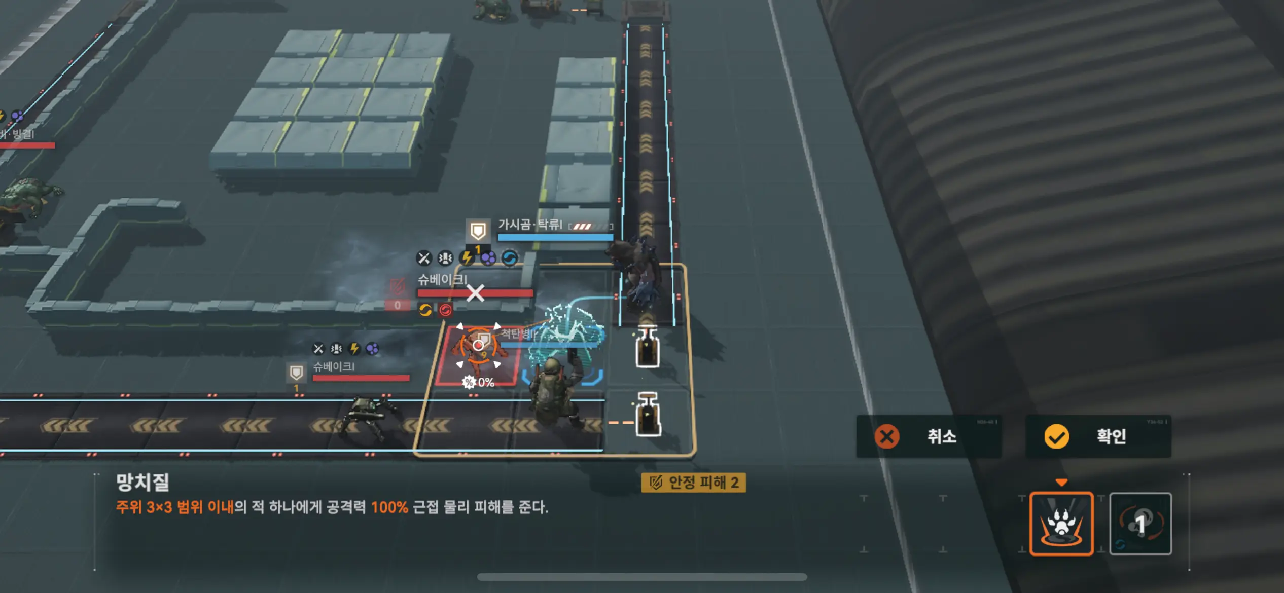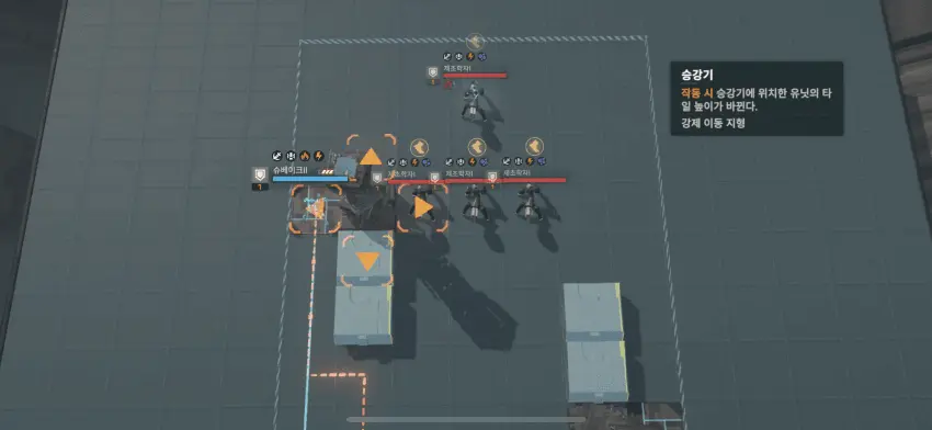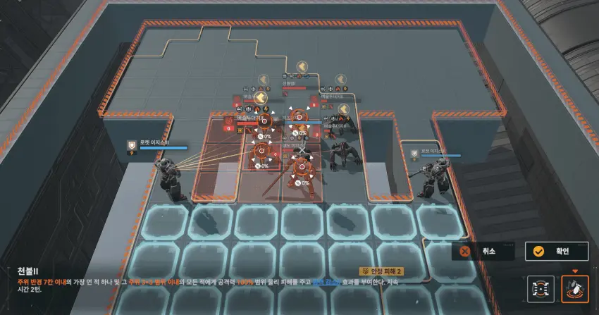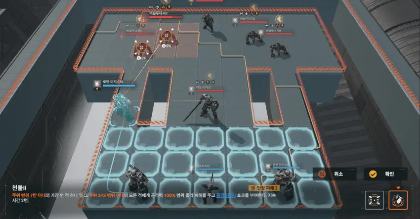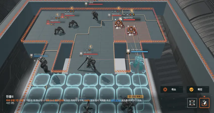 이동 후 왼쪽 기계 공격.