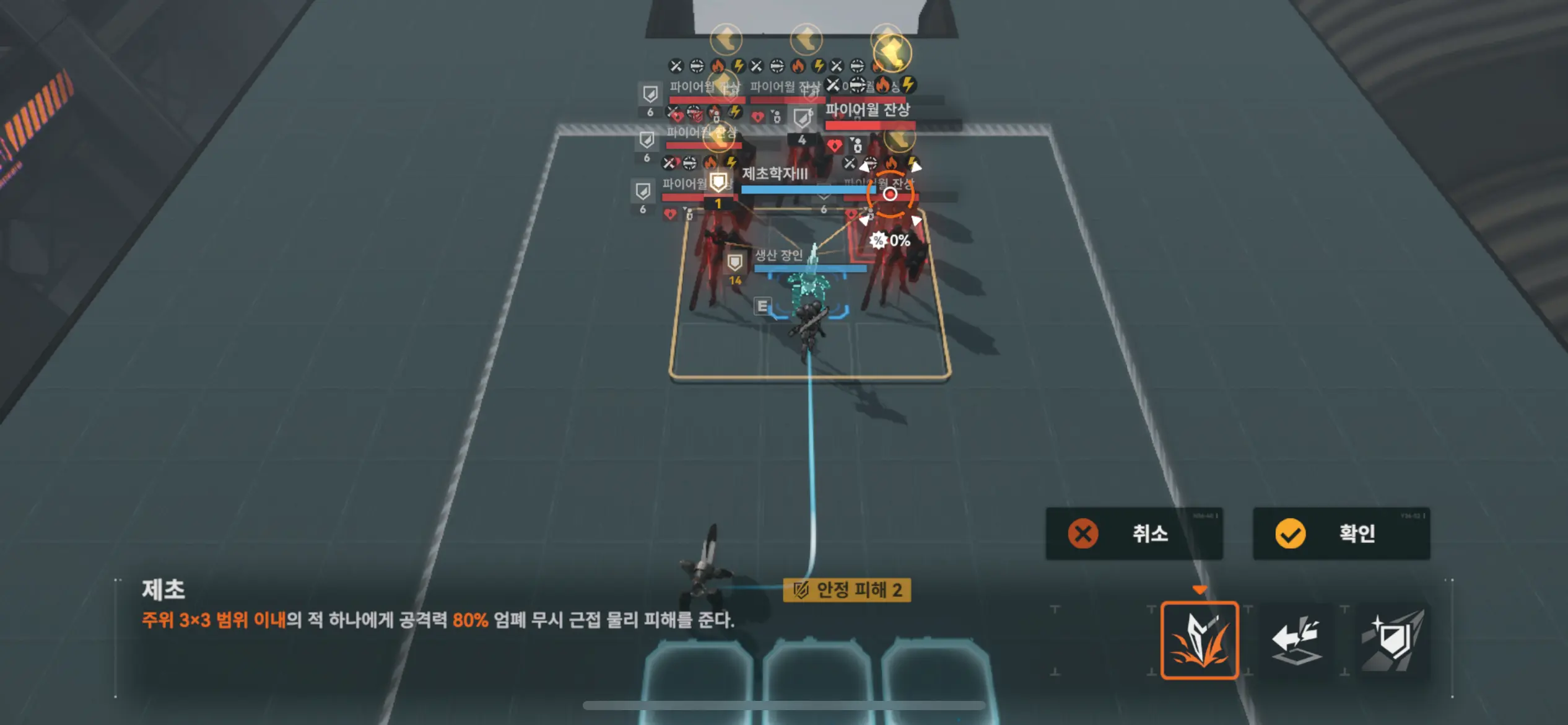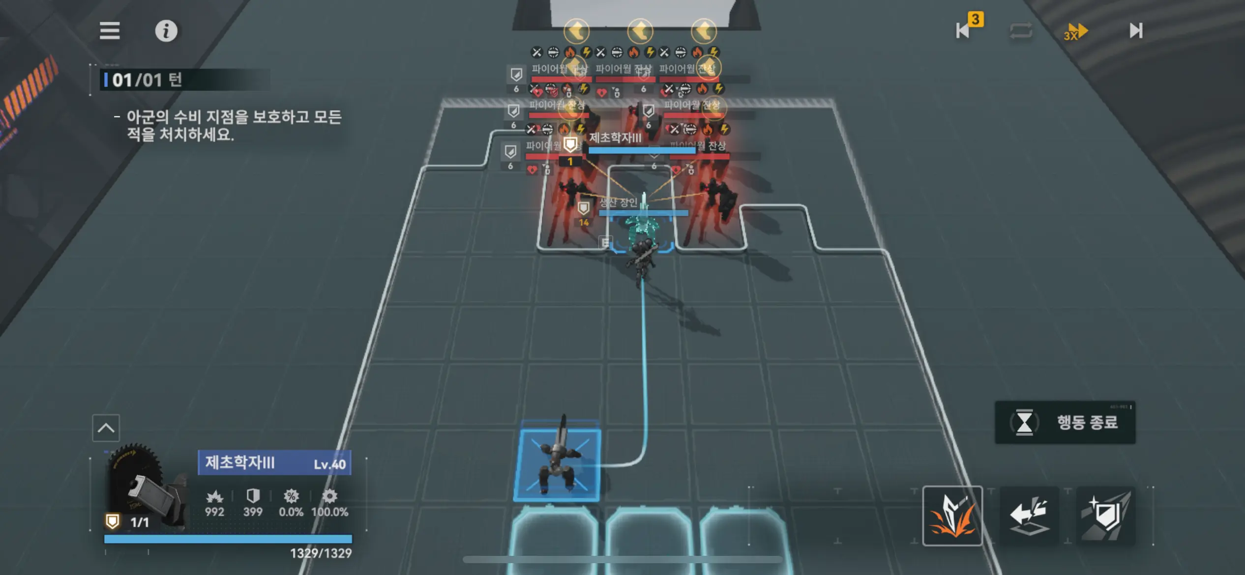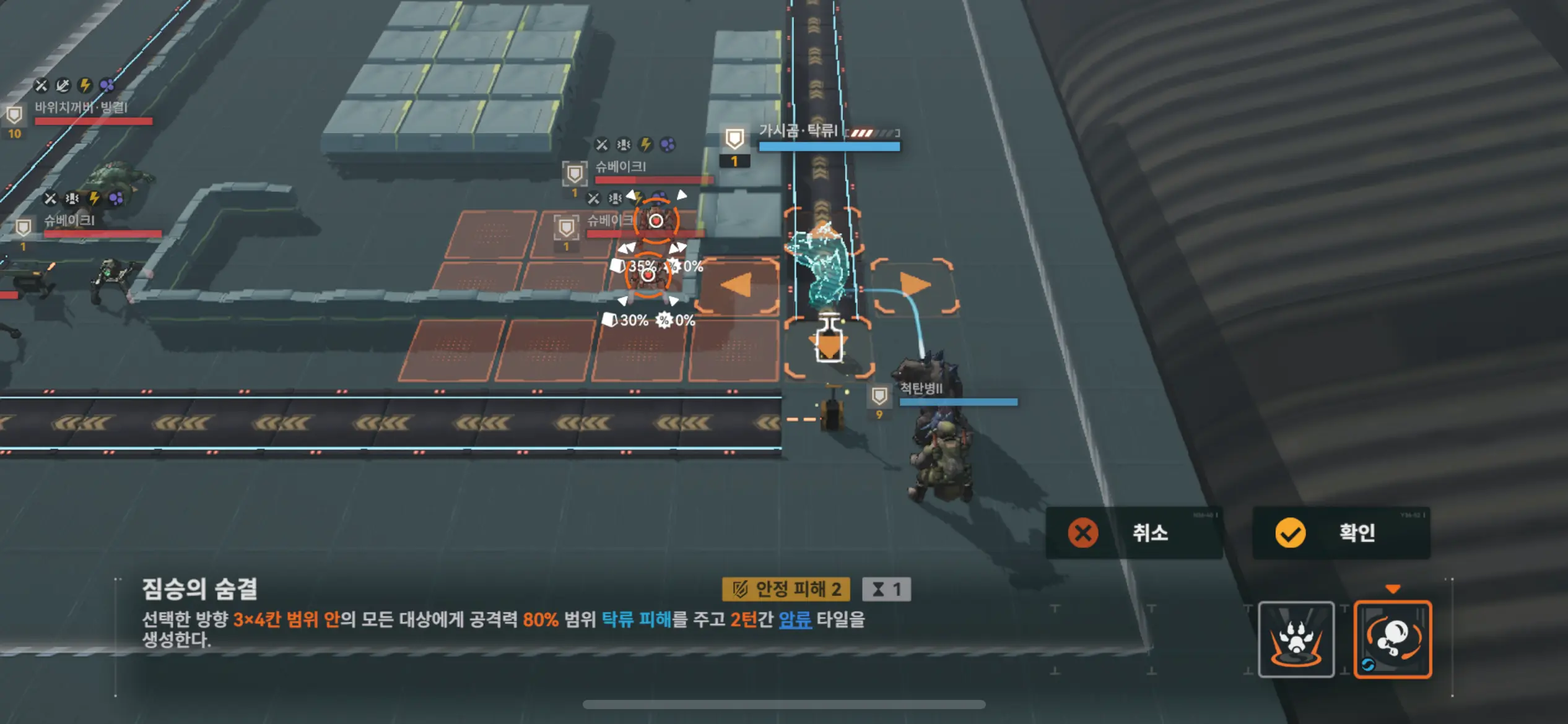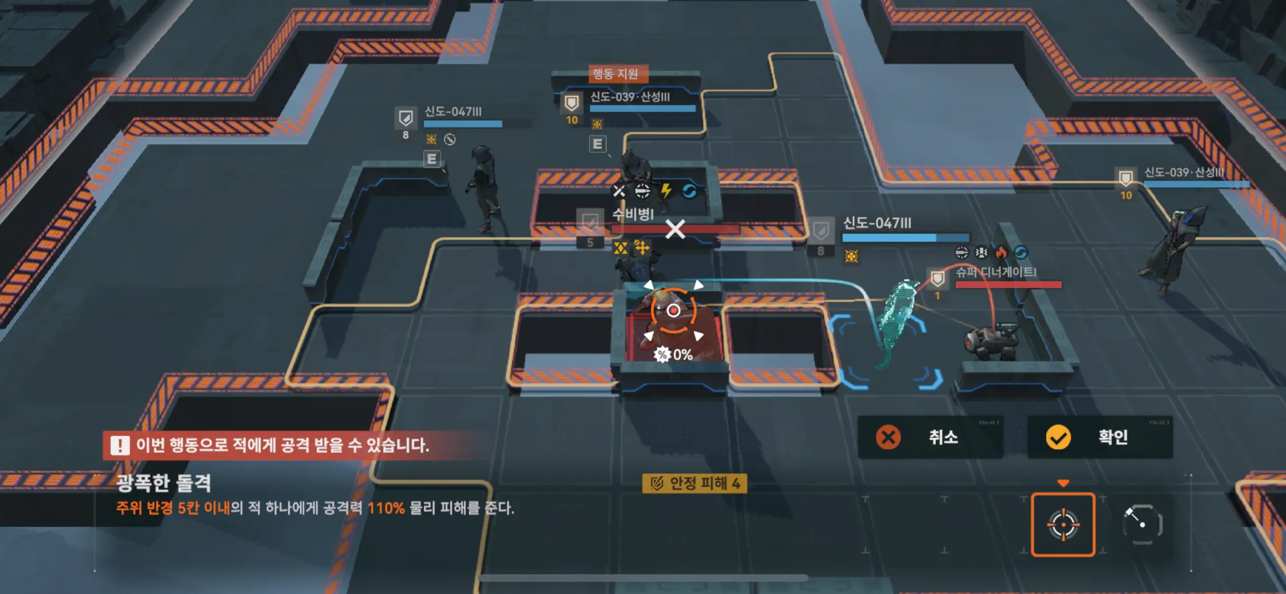 이동 후 왼쪽 기계 공격.