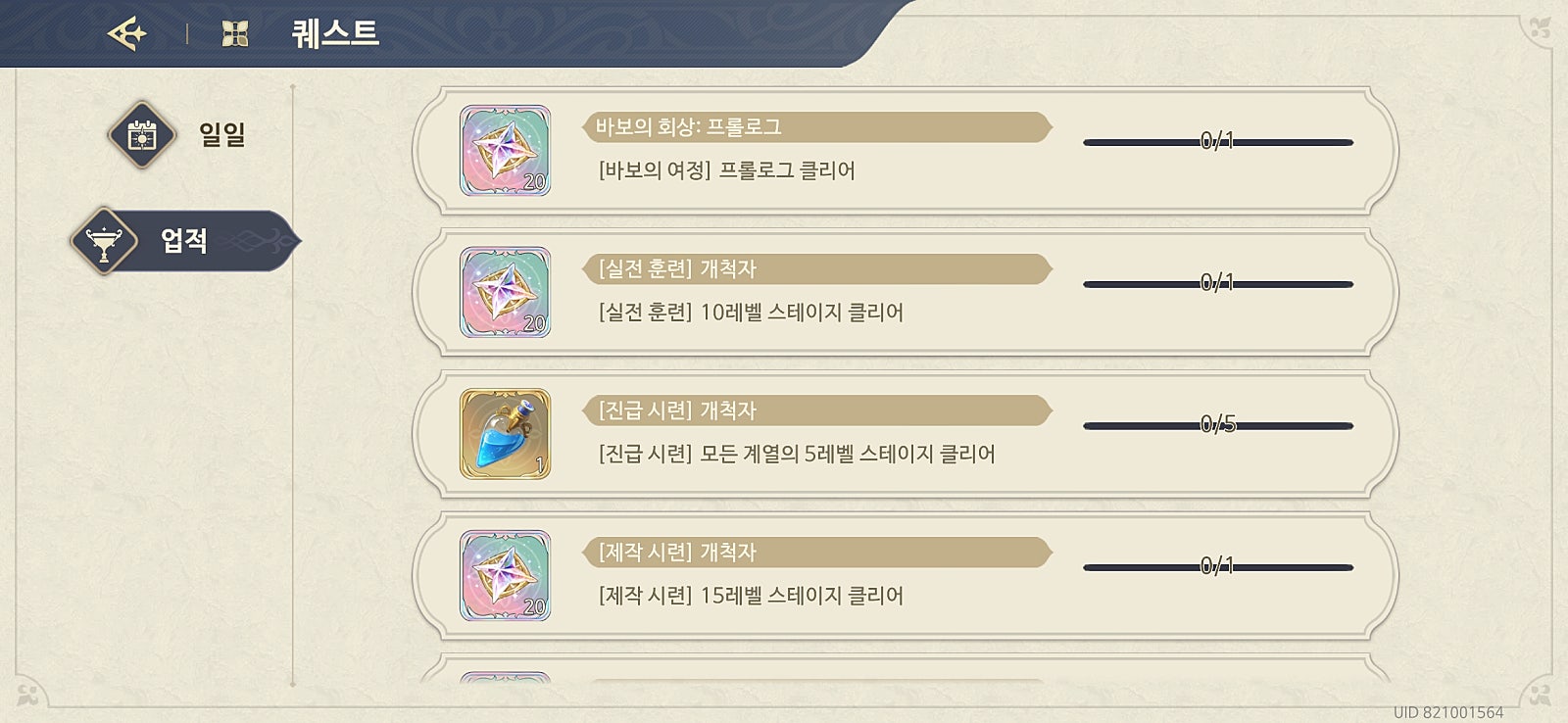 메인화면에서 업적 보상을 다 받으면