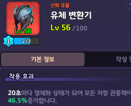 유물의 쿨타임과 지속 시간이 무제한이 되는
