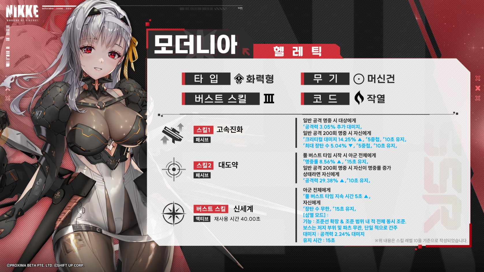 승리의 여신 니케 모더니아 스킬과 성능 공략