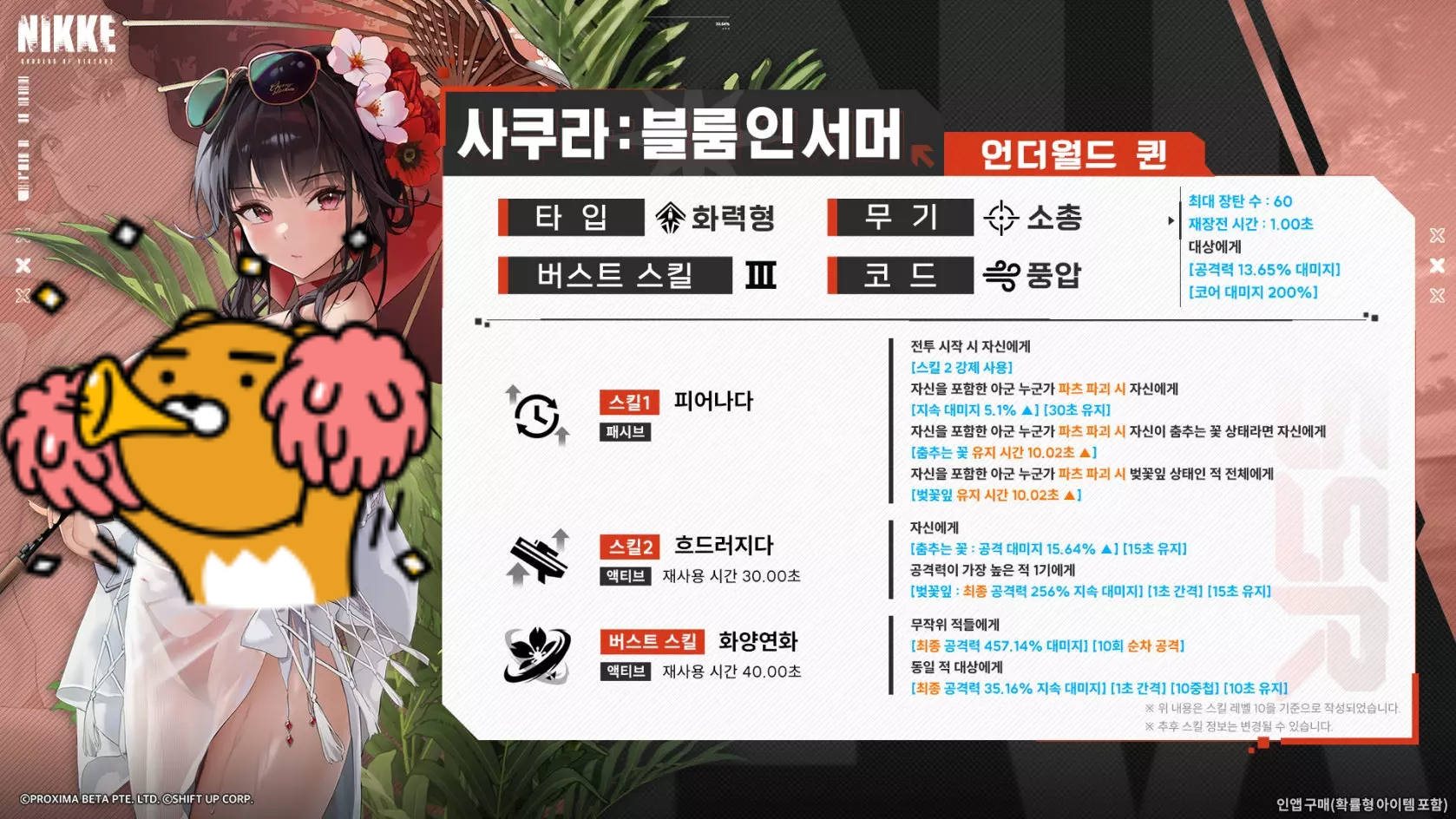 승리의 여신 니케 여름 한정 사쿠라 공략 성능 스킬 큐브 오버로드 파티 조합