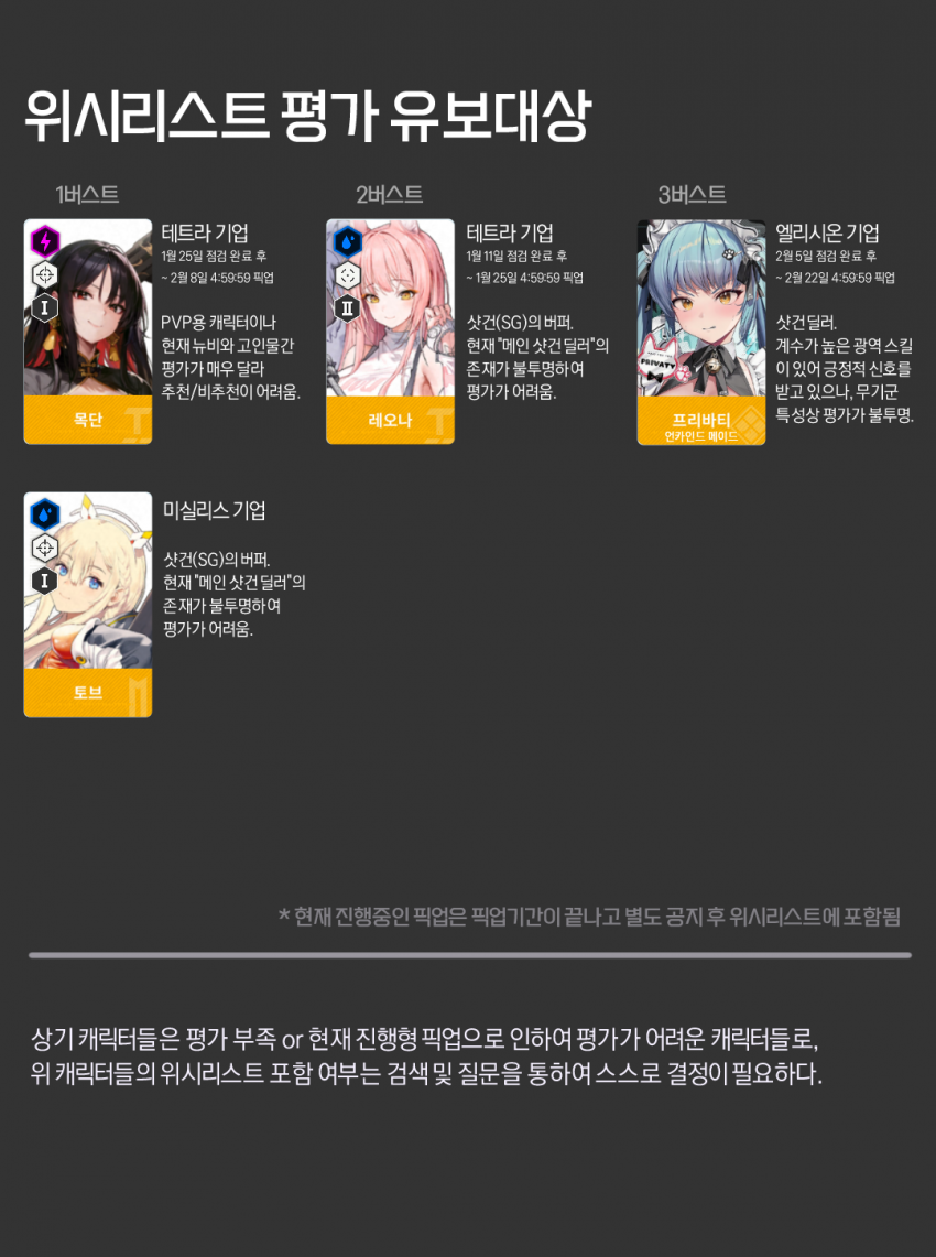 신규 캐릭터 출시 후 바꾼 위시리스트입니다.