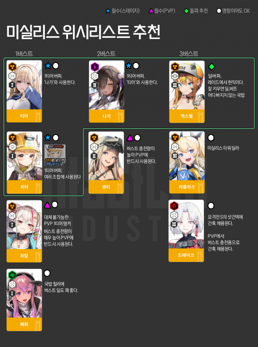 2. 버퍼 니케는 명함만 따는 걸 우선으로 하세요.