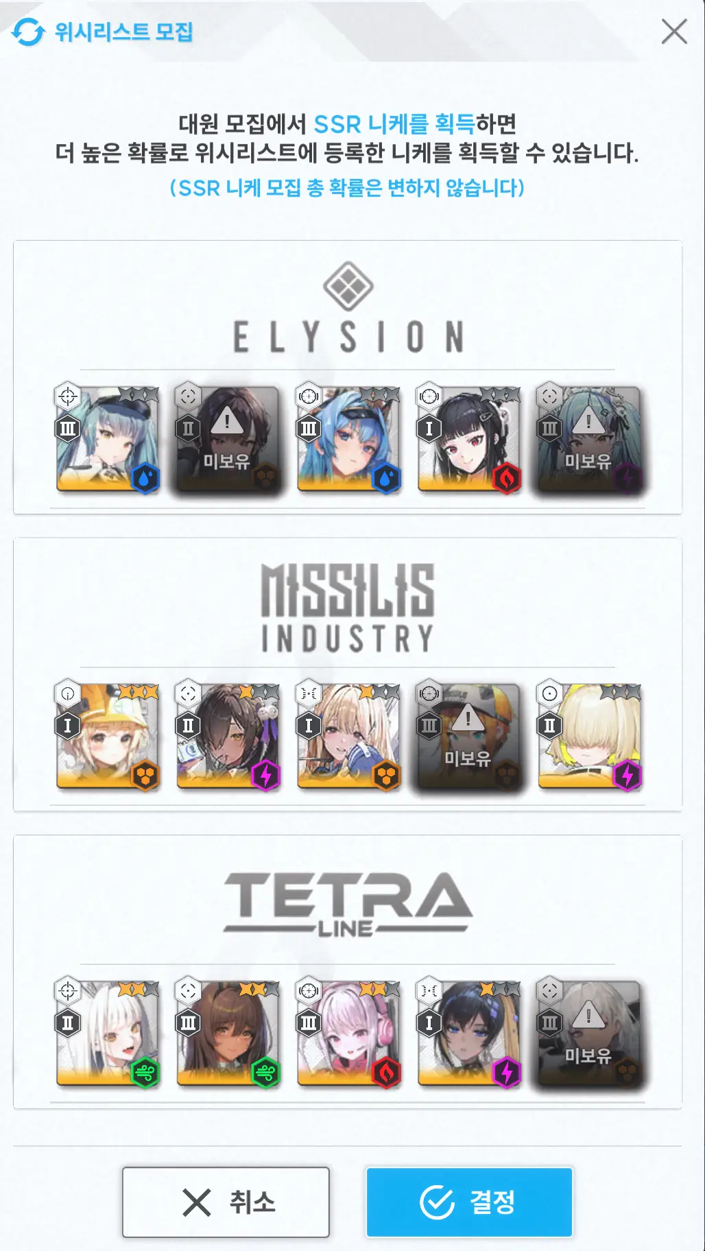 신규 캐릭터 출시 후 바꾼 위시리스트입니다.