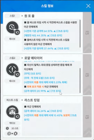 직전에 버스트 스킬을 사용하지 않은 아군 전체에게
