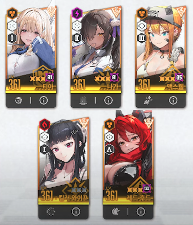 나가 + 티아 + 레드 후드 + 동탄 D + 엘리스