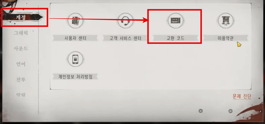 3. [계정] -> [교환 코드]으로
