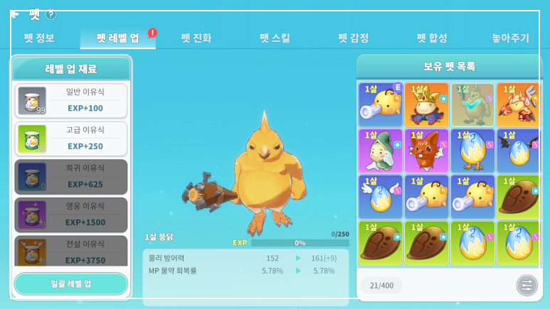 위와 같은 펫 구성이라면 전설 펫인 뚱닭은