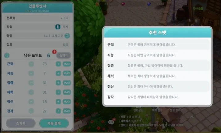 초반에는 지능 위주로 스탯을 올리다가