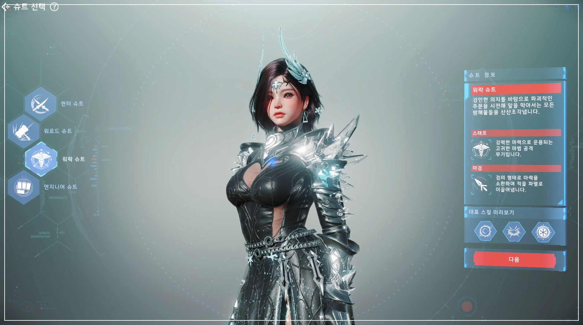 이런식으로 캐릭터를 생성할 때 출신과 슈트를 정할 수 있습니다.