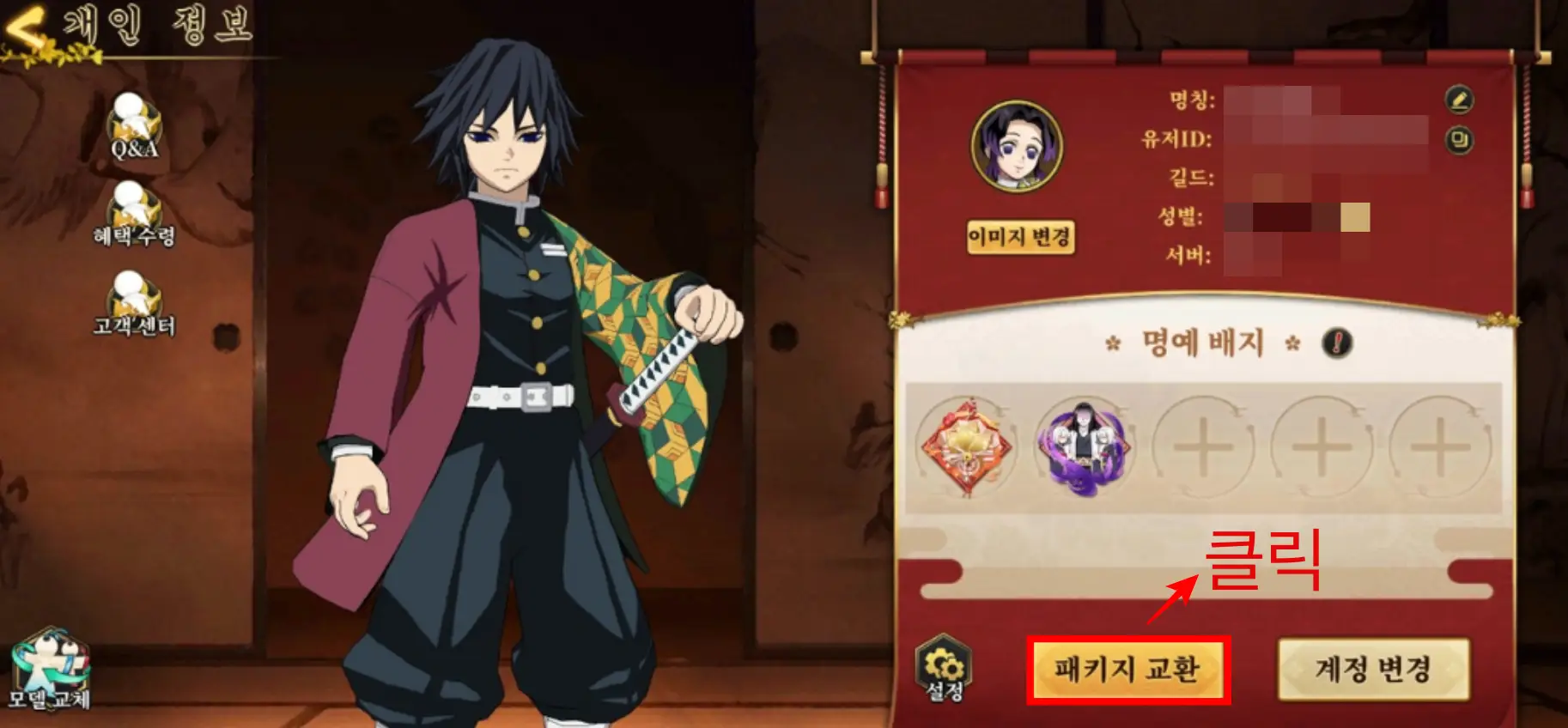 2. 위와 같이 [패키지 교환] 클릭합니다.