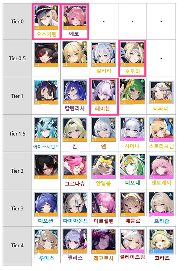 캐릭터 티어를 설명해 드려야겠죠?