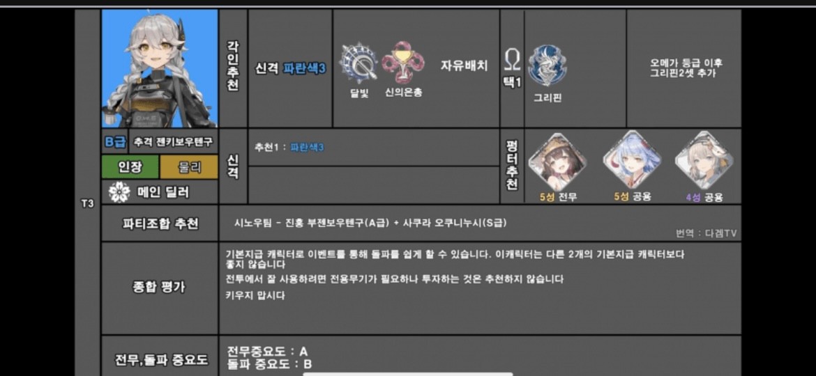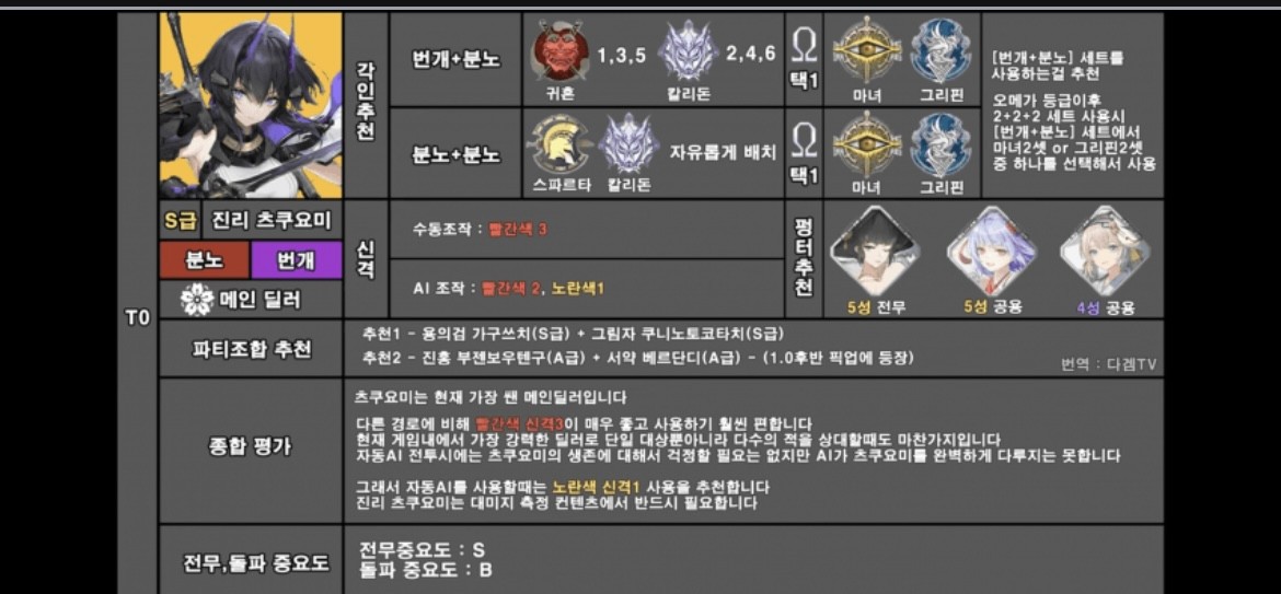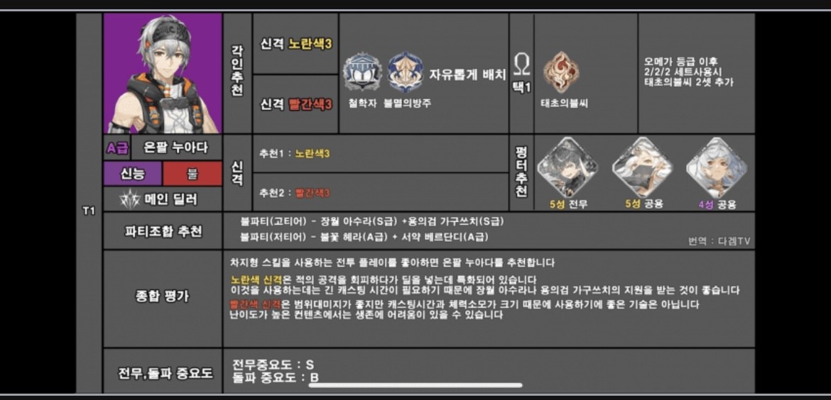 설명에 파티조합과 템이 갖춰줘야 하므로.. 그렇게 따지면 다 좋은게 아닌가??