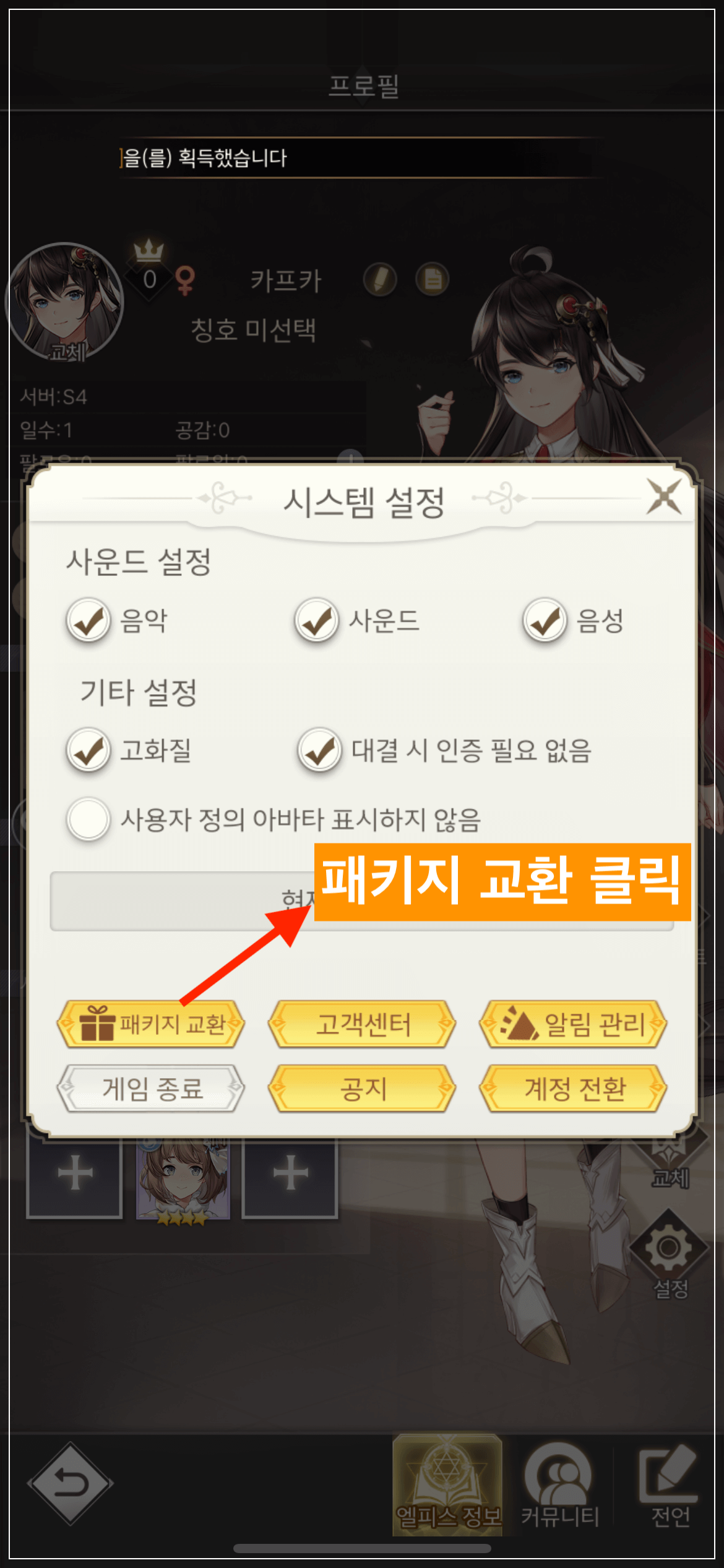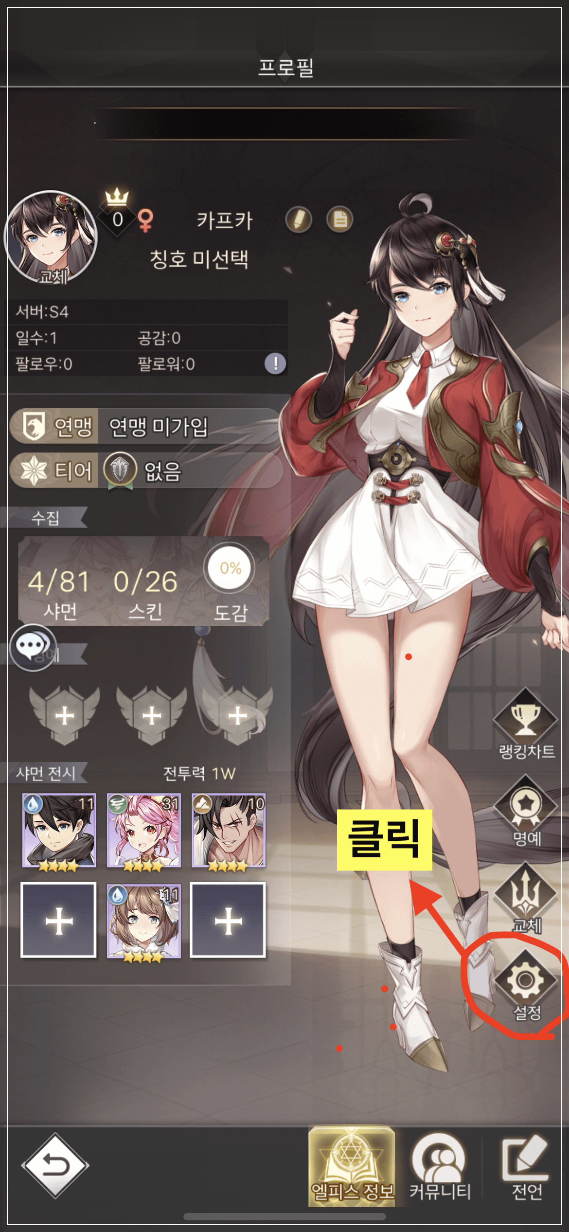 1. 게임 메인 왼쪽 상단에 [프로필 사진]을 클릭