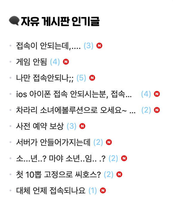 게다가 서버도 안 들어가지는 분들도 많은 것 같습니다.