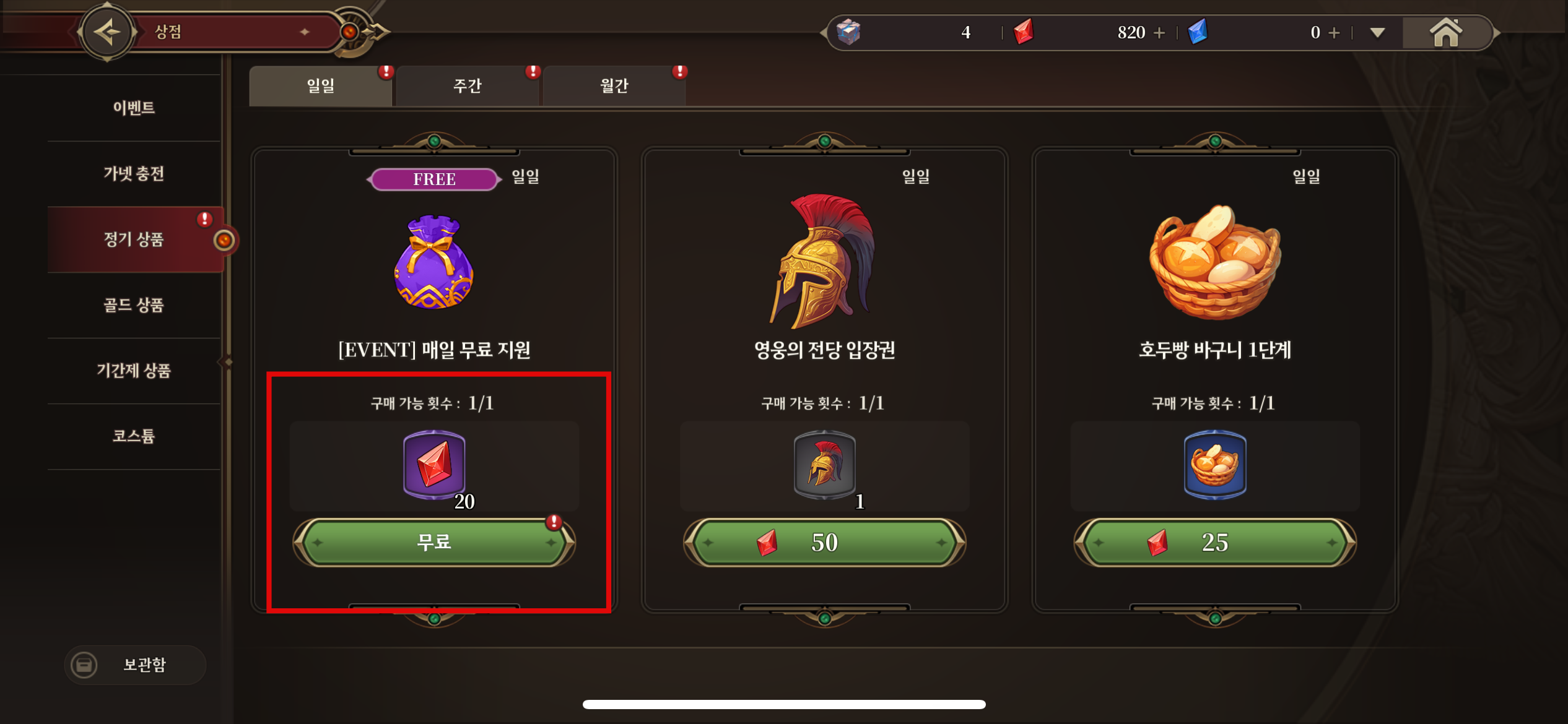 3. 상점에 가서 무료 보석을
