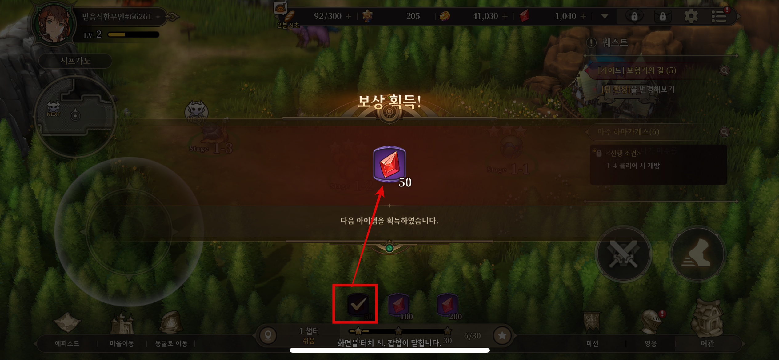 클리어하여 보석을 얻어줍니다.