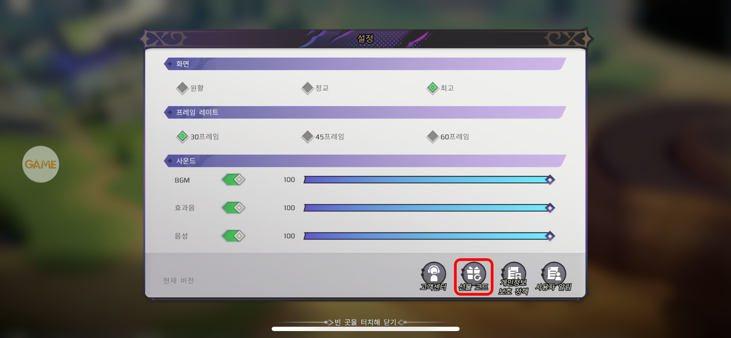 2. [선물 코드]를 클릭합니다.