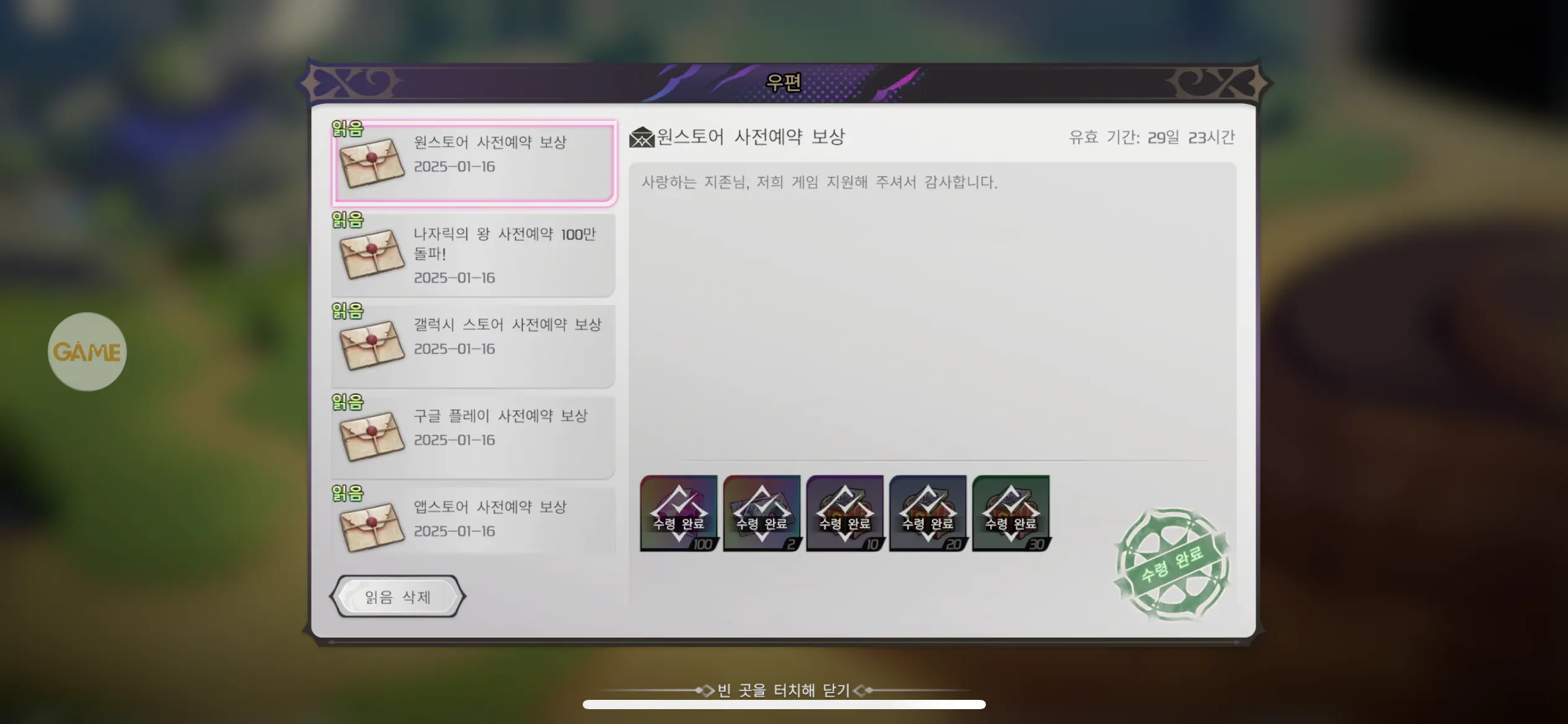 우편함에 재화 수급