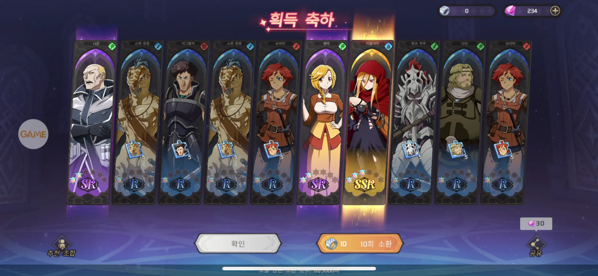 픽업 캐릭터에 이렇게 10뽑으로