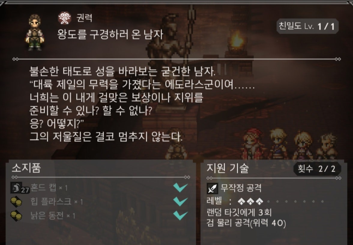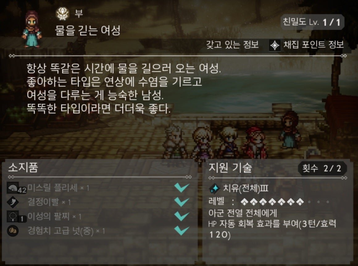 옥토패스 트래블러 대륙의 패자 알면 좋은 지원 NPC 목록 공략 2024년 2월