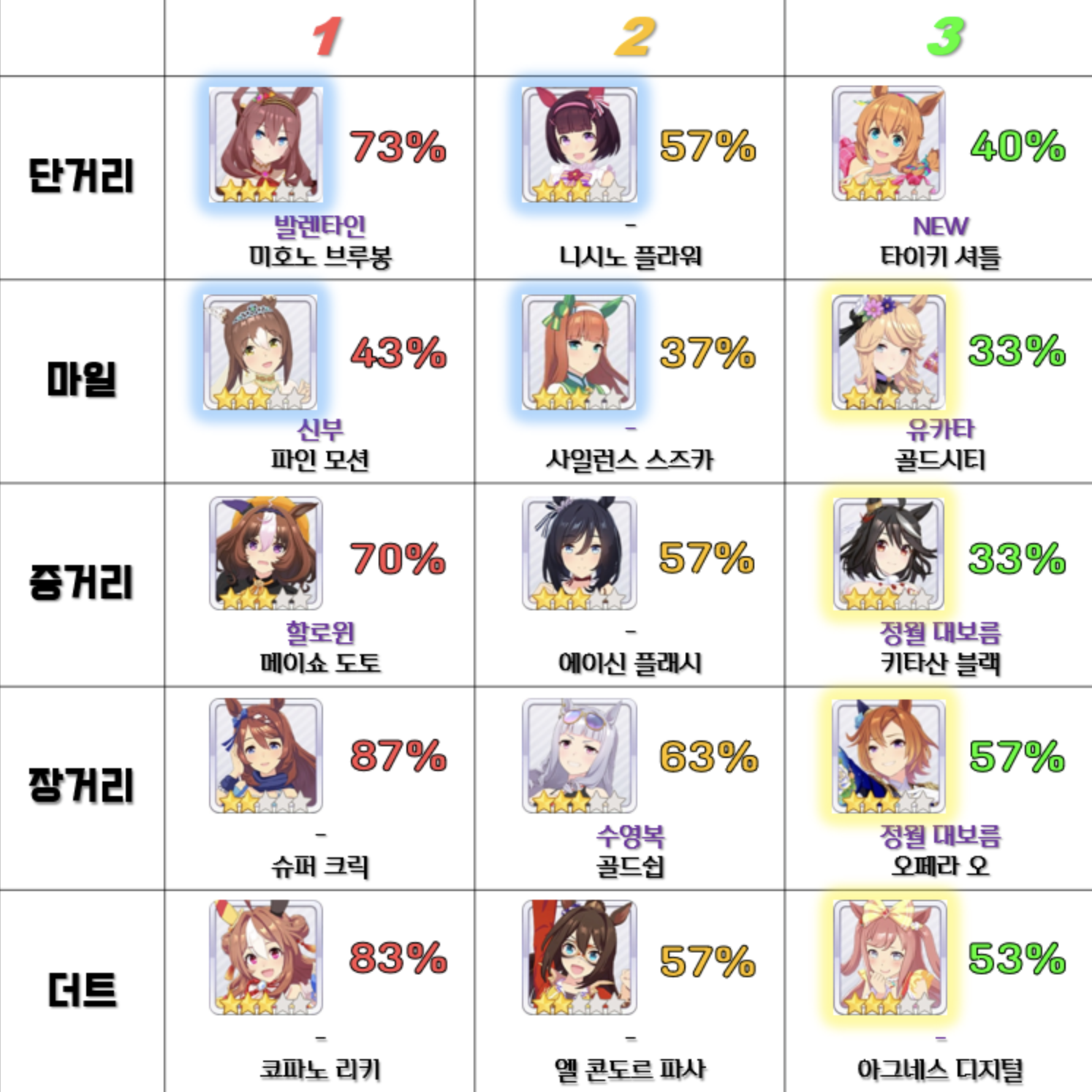 우마무스메 캐릭터 거리별 티어표