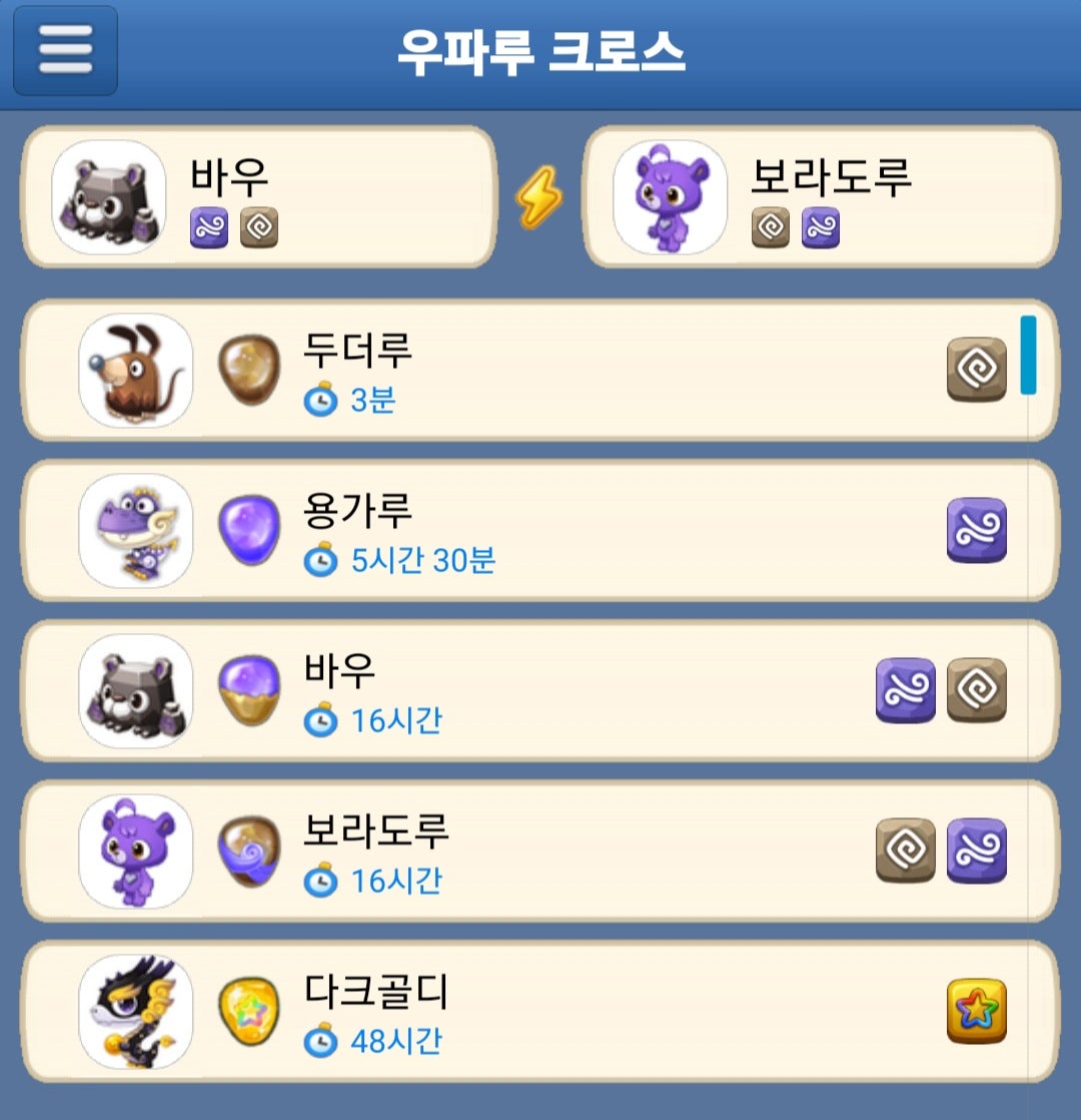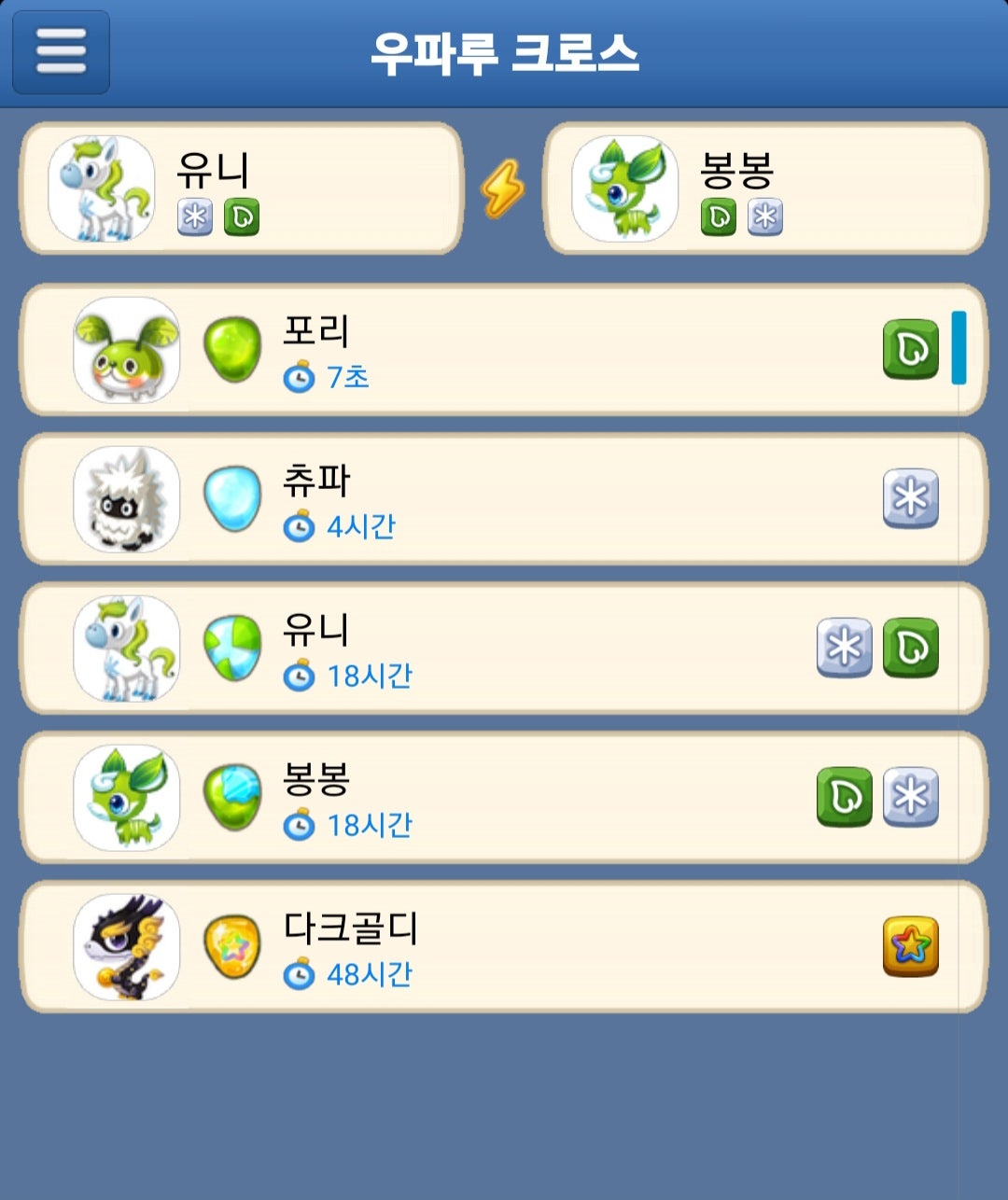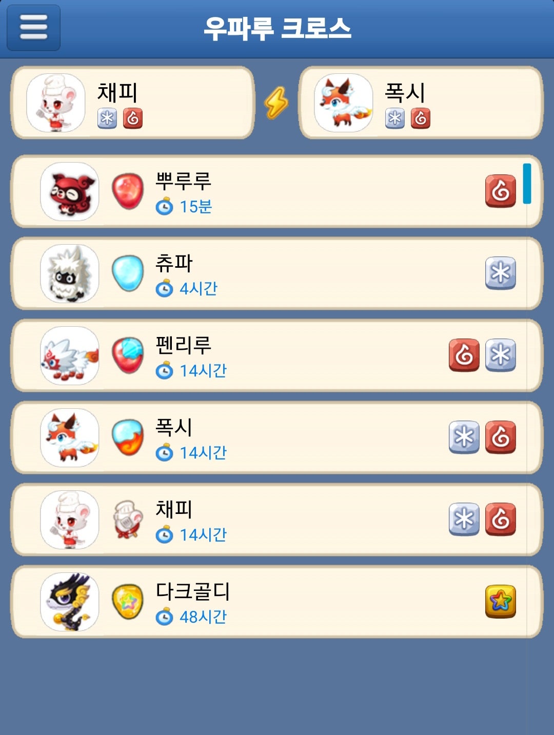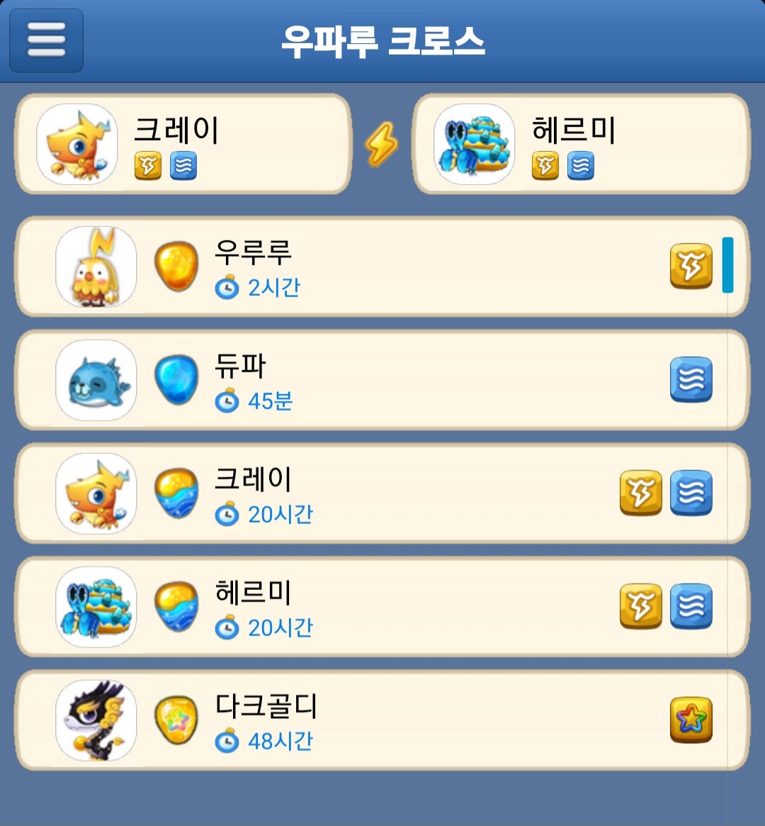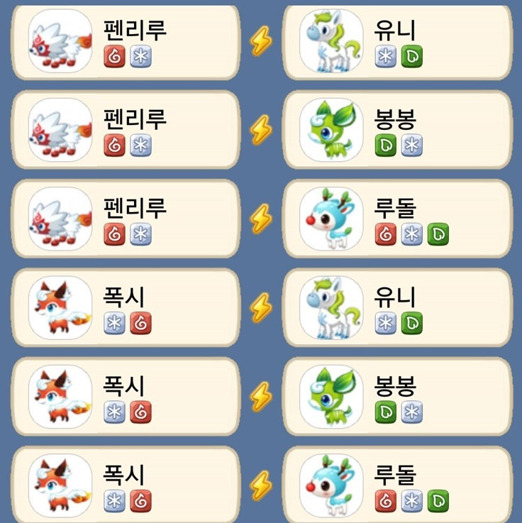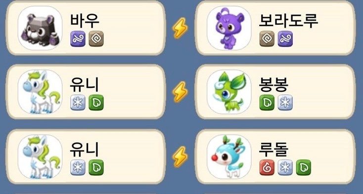골디 = 레어 1마리 포함 4 속성 조합이고