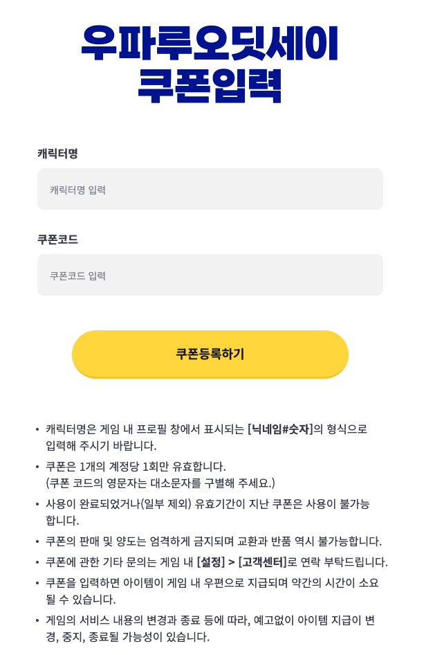 우파루 오딧세이 쿠폰 코드 및 입력 방법 2025년 2월 2일