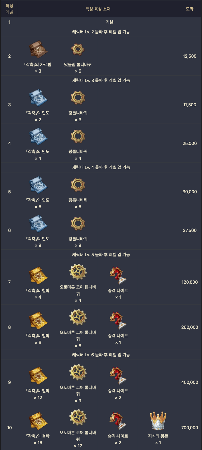 특성, 스킬, 전무 1 레벨로