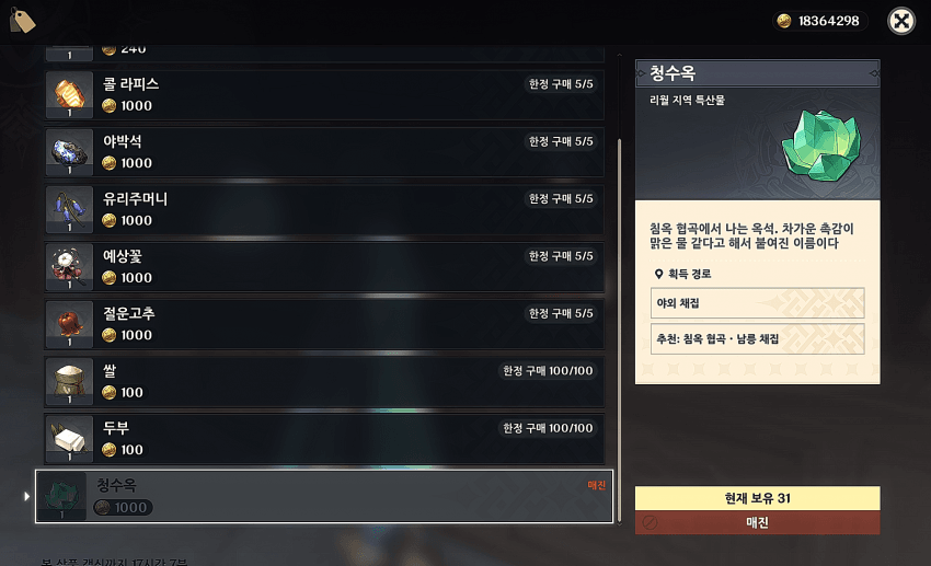 청수옥은 파밍 꿀 장소를 가르쳐 드릴게요.